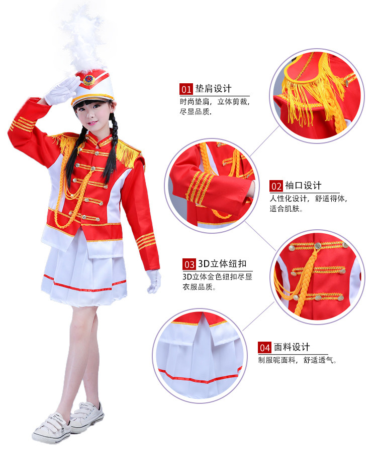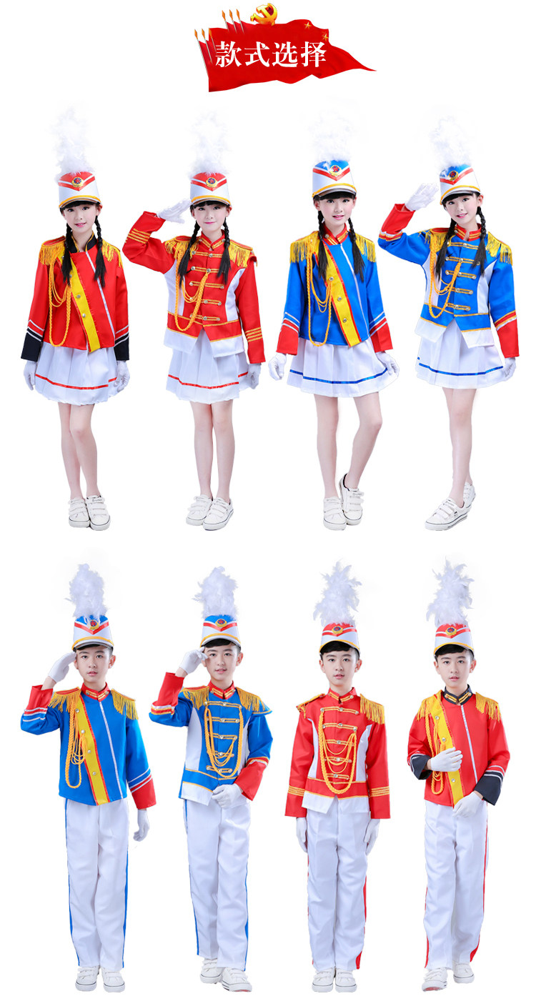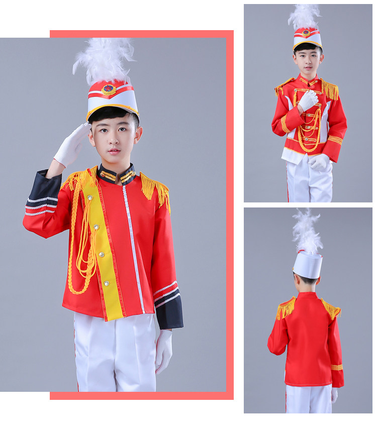 Бесплатная доставка по китаю Почетный гвардии военный оркестр, барабан, рожок, команда, студенческий костюм для выступления, костюм пионеров, флаг, протектор, костюм рейдера