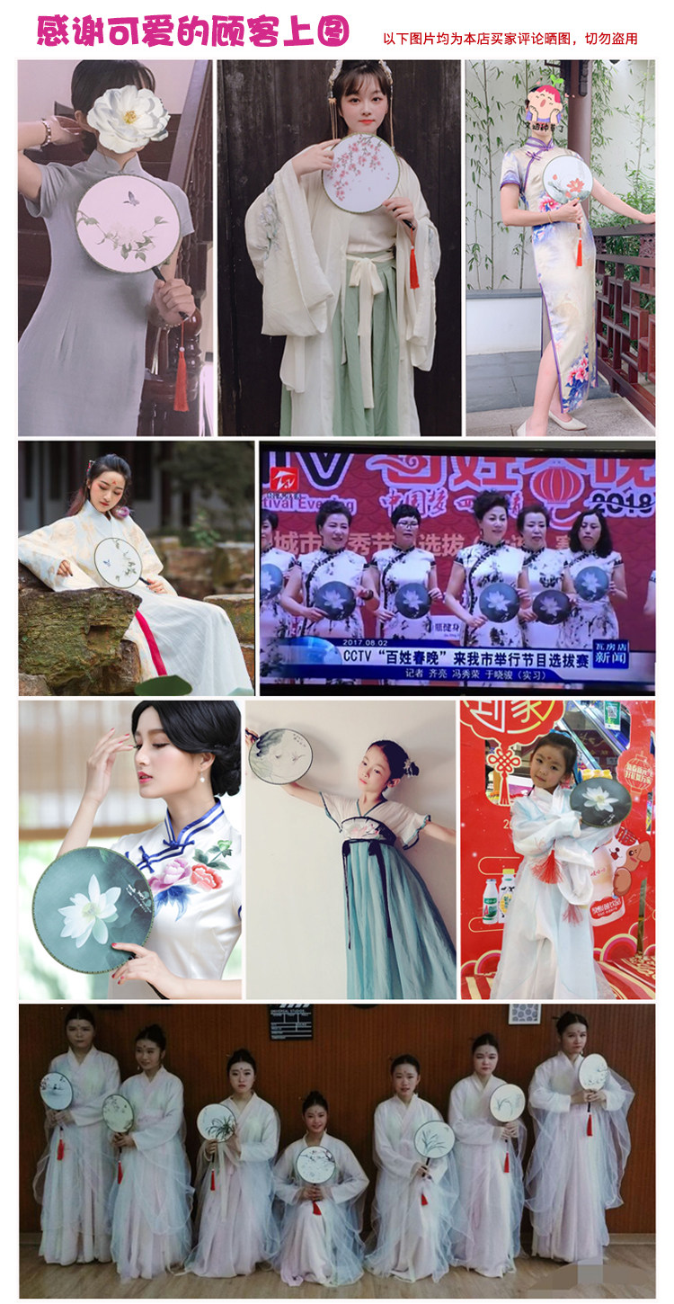 Двойной веер из теста Китайский веер Зигу классический Hanfu древний стиль круглый фан-корт фанат Cheongsam подиум кадриль