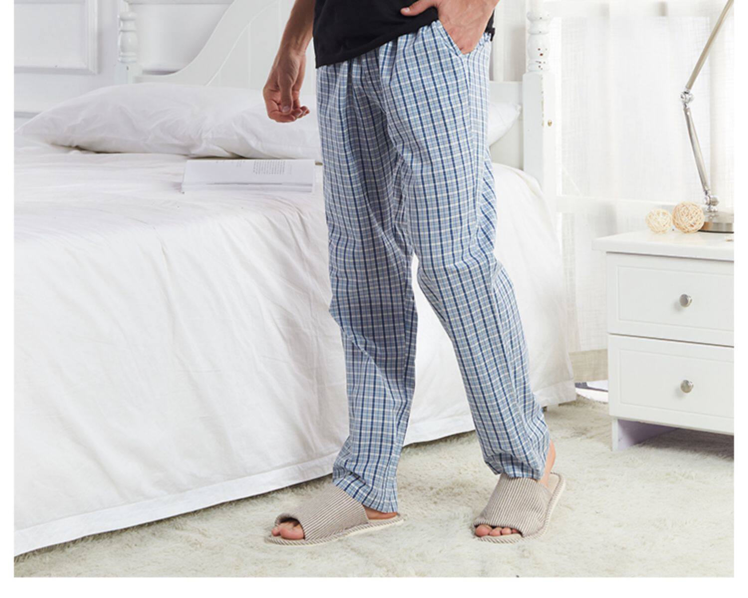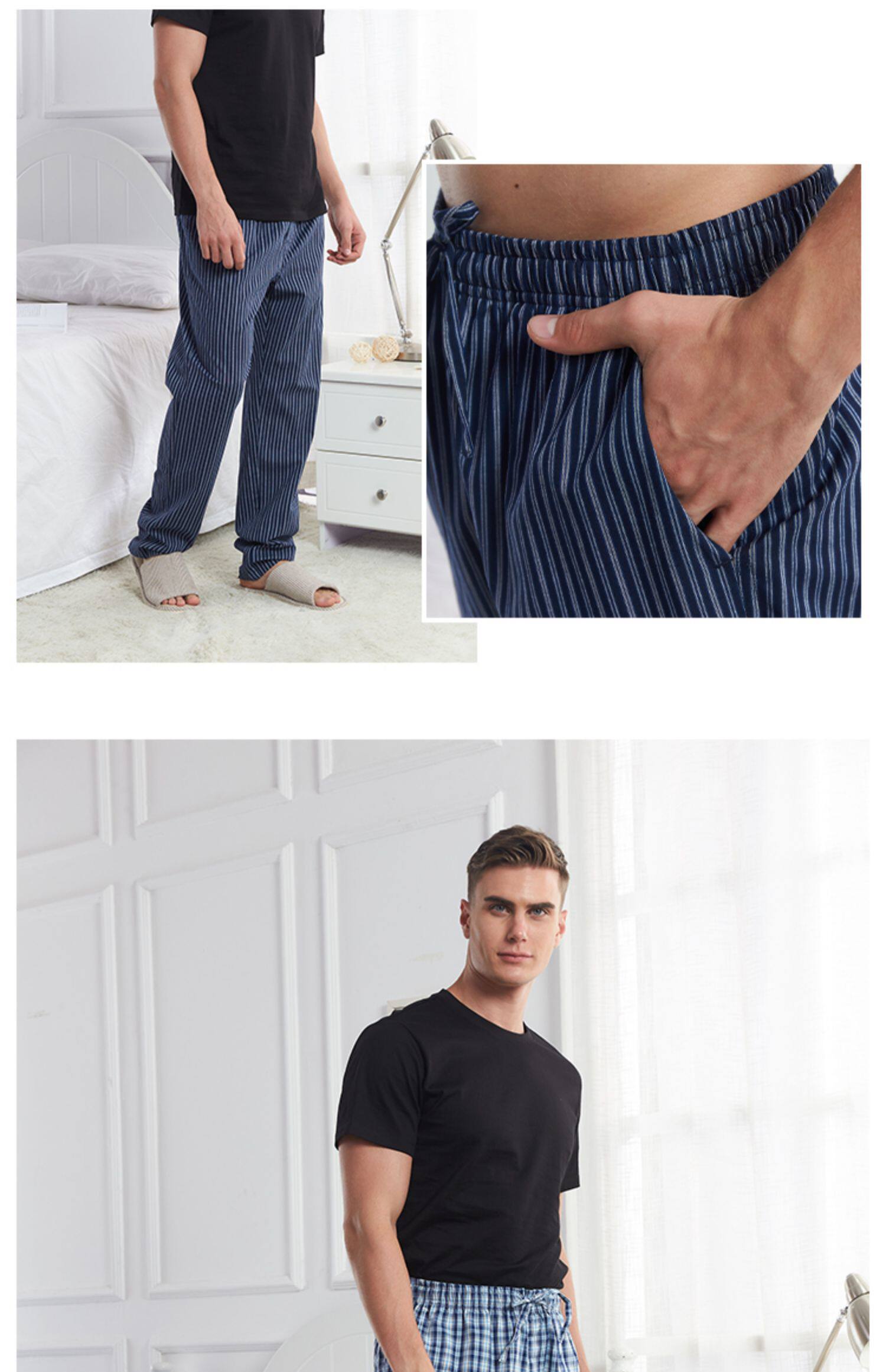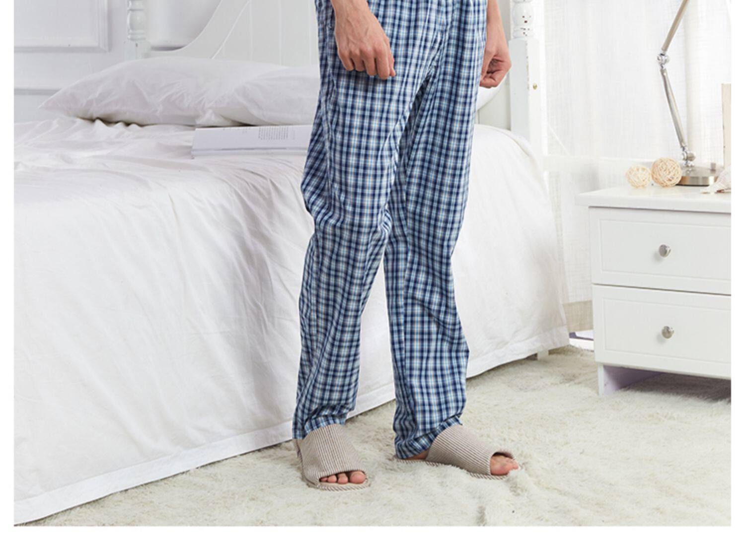 Спящие штаны мужской Лето тонкий стиль чистый хлопок штаны большой размер Свободный для отдыха Домашнее место демисезонный мужской полностью хлопок Домашнее задание