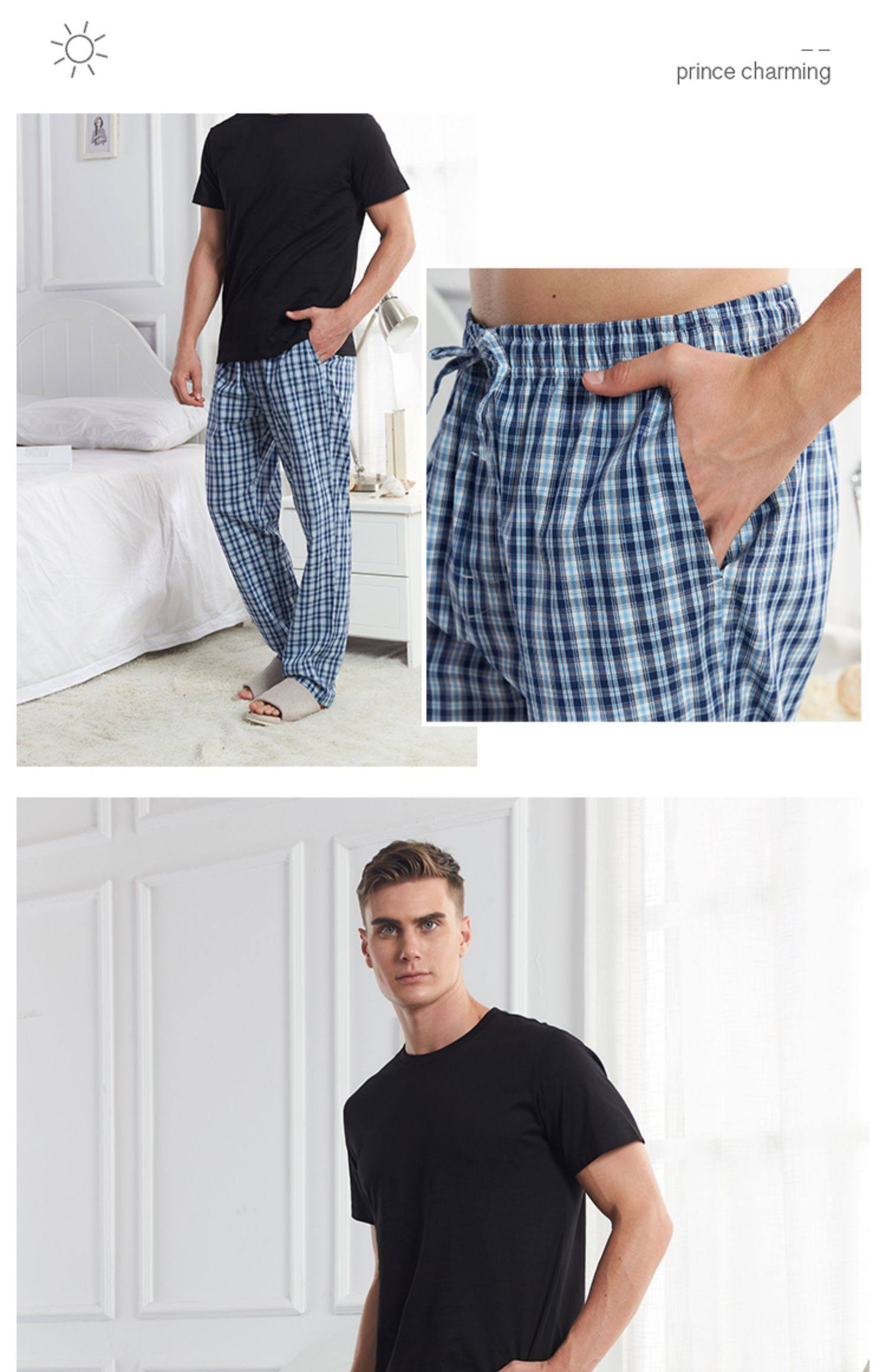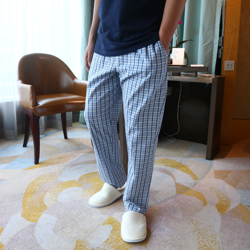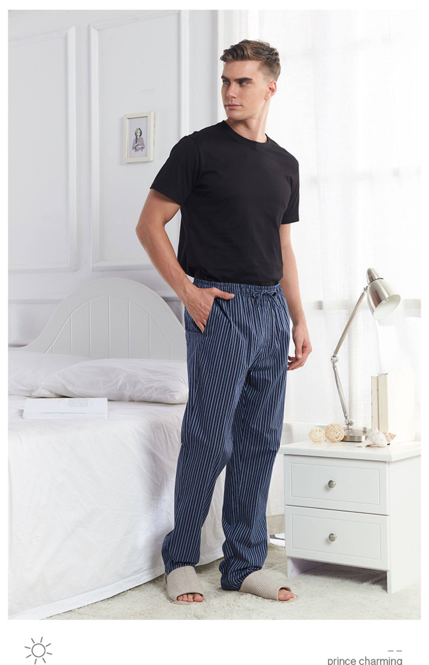 Спящие штаны мужской Лето тонкий стиль чистый хлопок штаны большой размер Свободный для отдыха Домашнее место демисезонный мужской полностью хлопок Домашнее задание