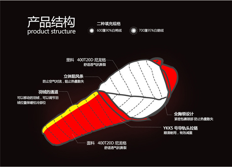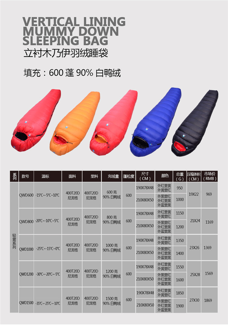 Черный Рок открытый вниз спальный мешок ультра свет 600 бассейн белый утиный пух 600-1500г может сращивать -10-35 градусов спальный мешок