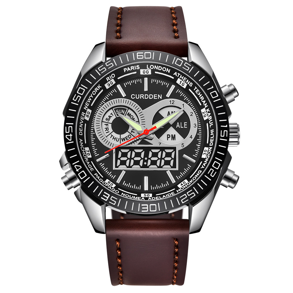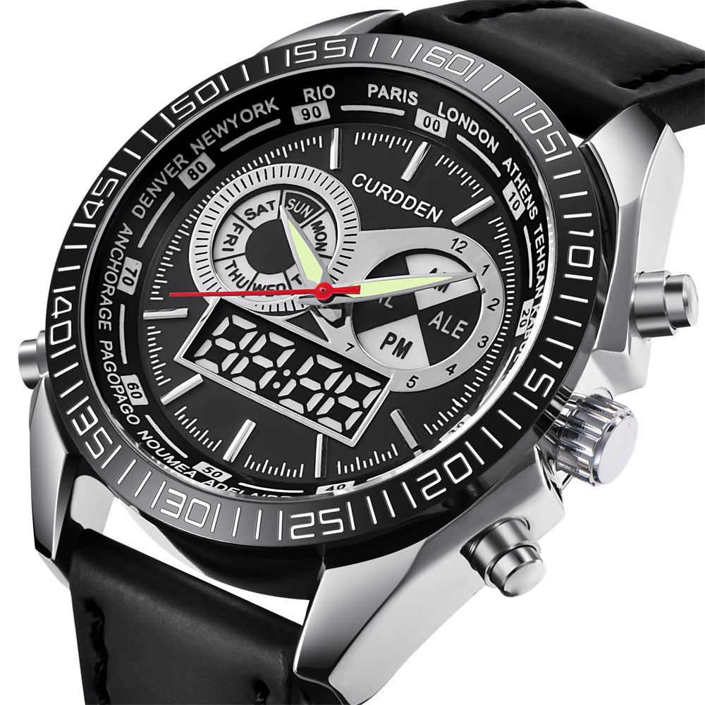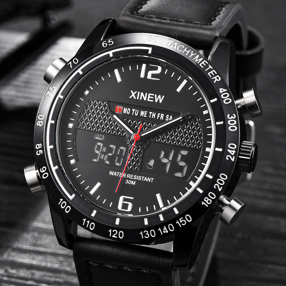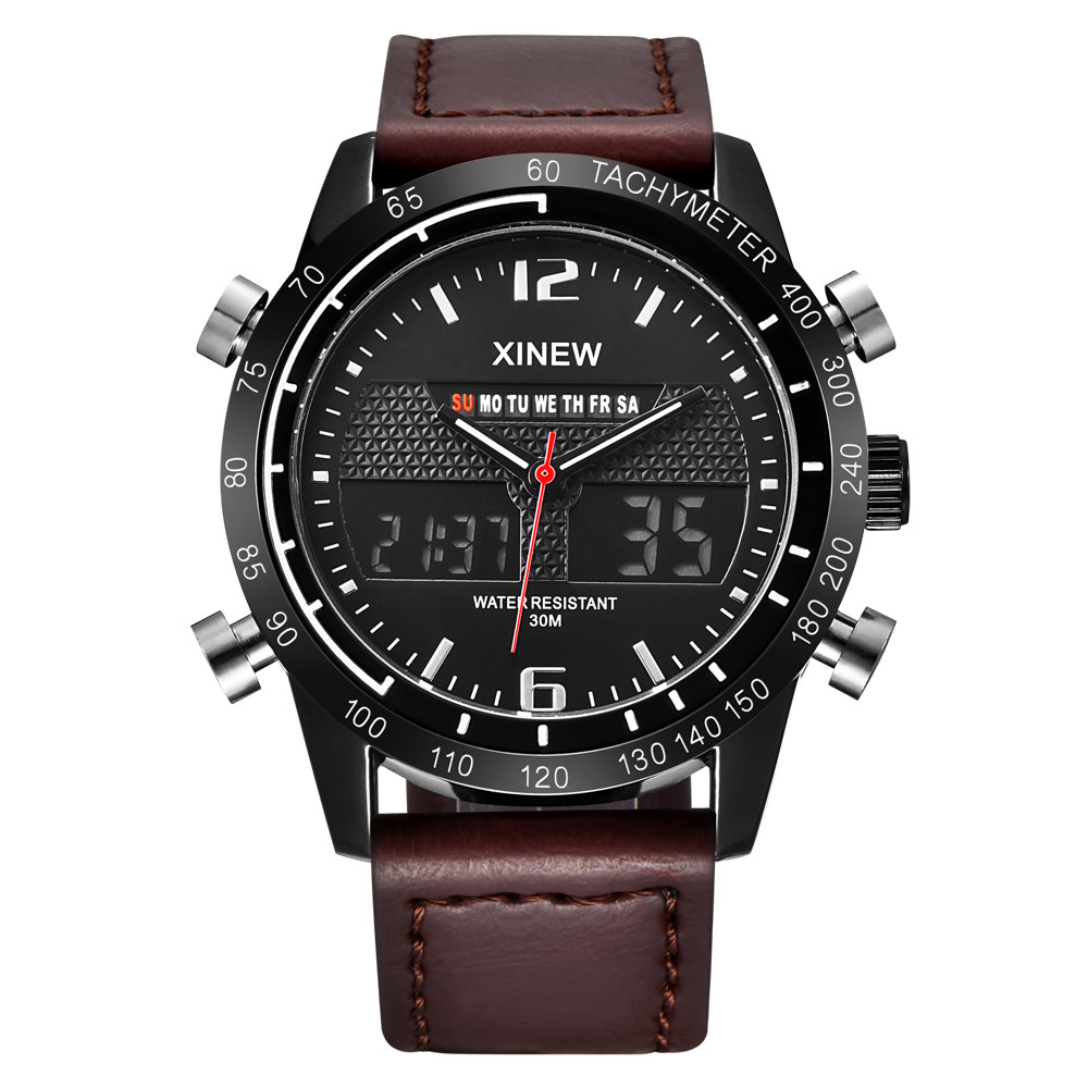 Men Leather Band Quartz Digital Chronograph Business Watches