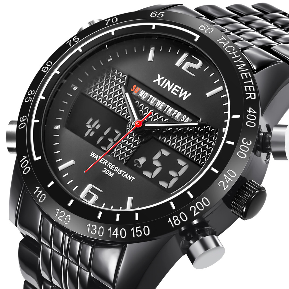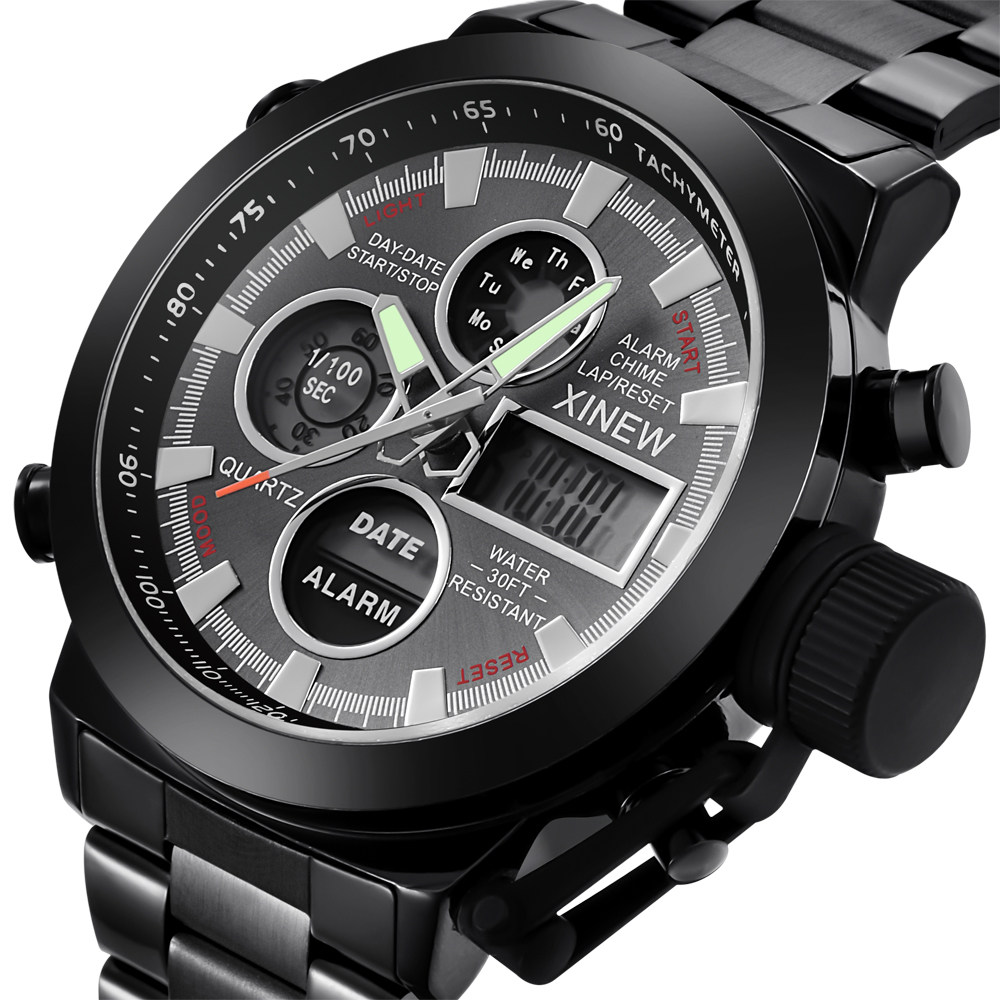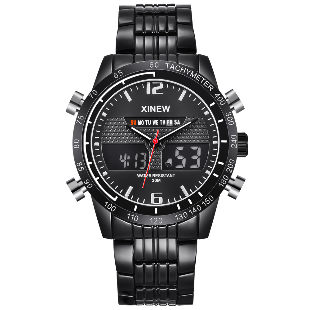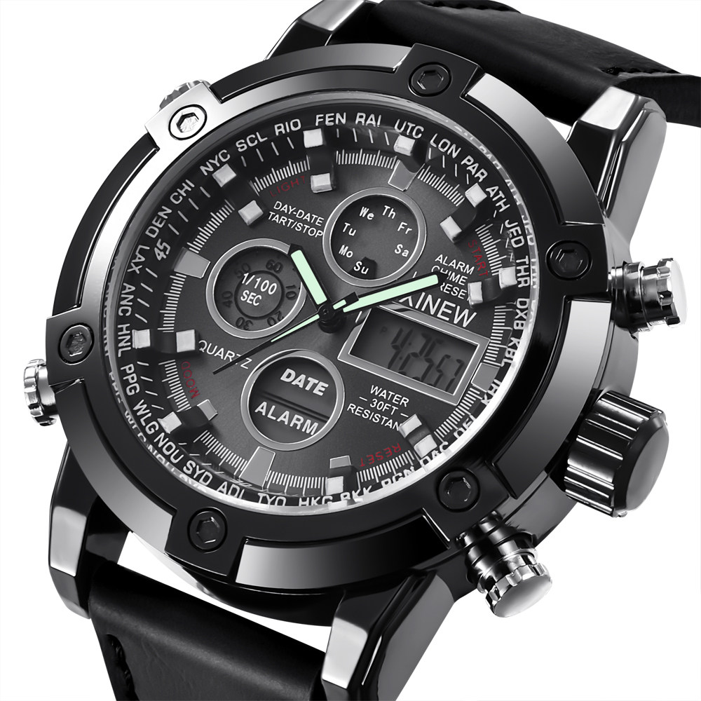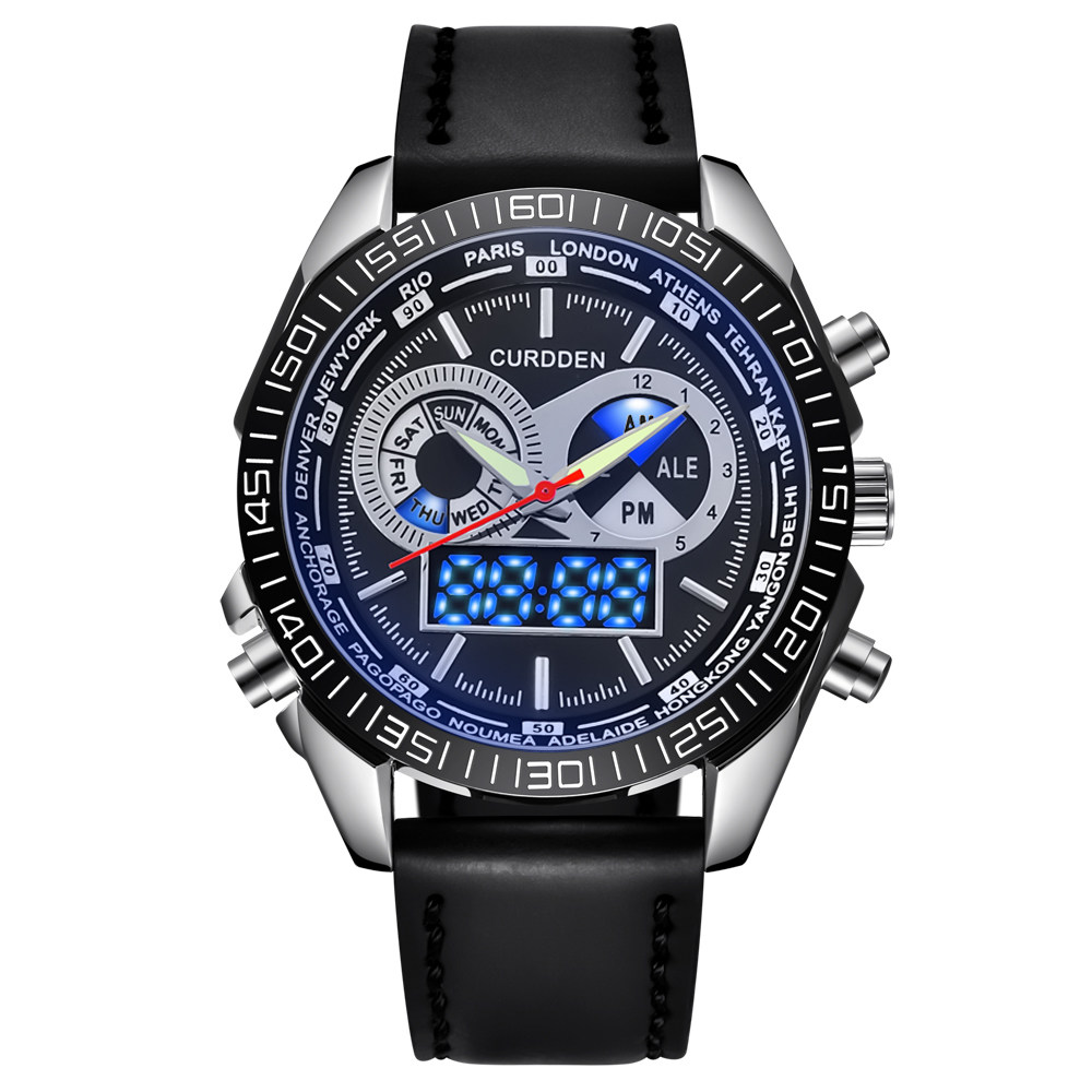Men Leather Band Quartz Digital Chronograph Business Watches
