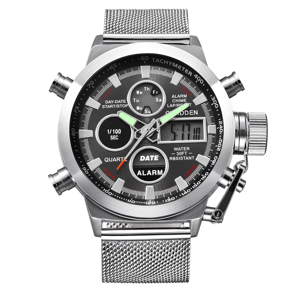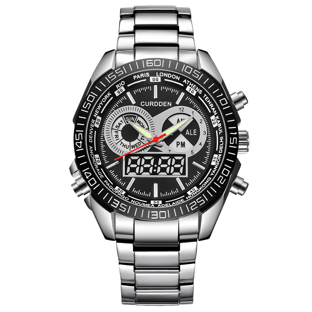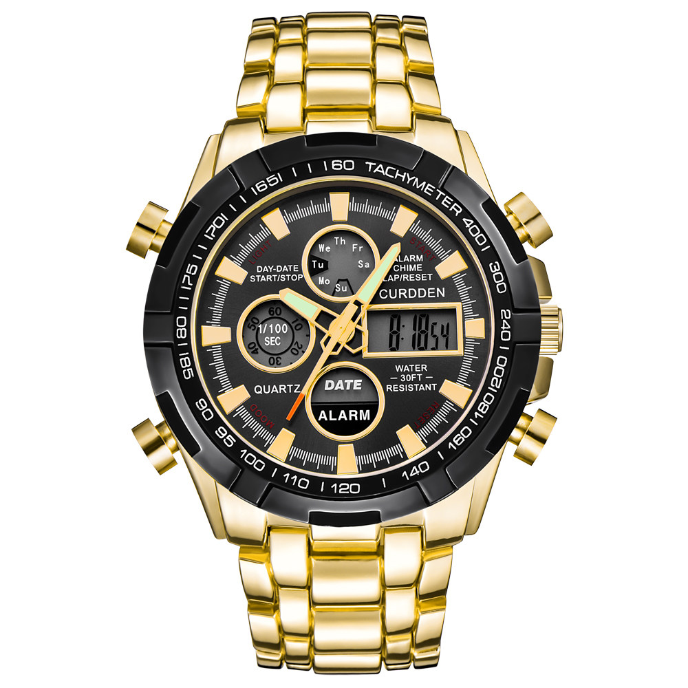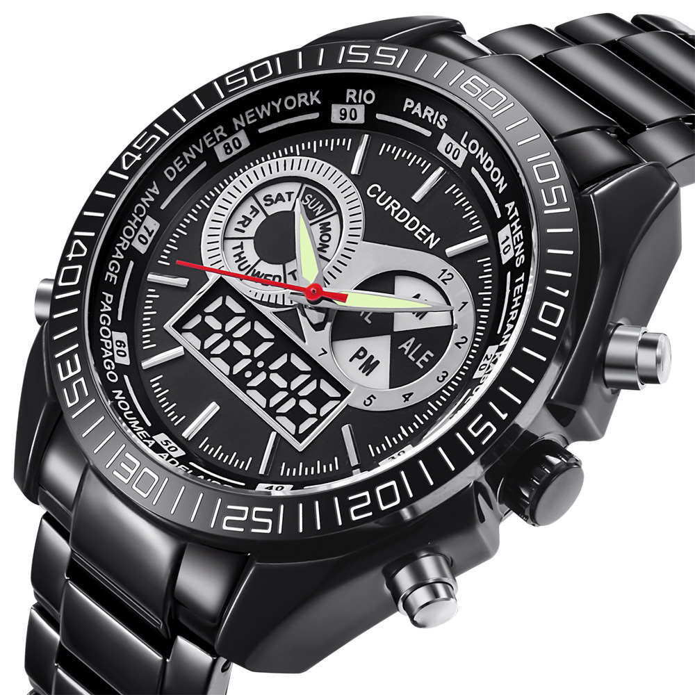 Men Leather Band Quartz Digital Chronograph Business Watches