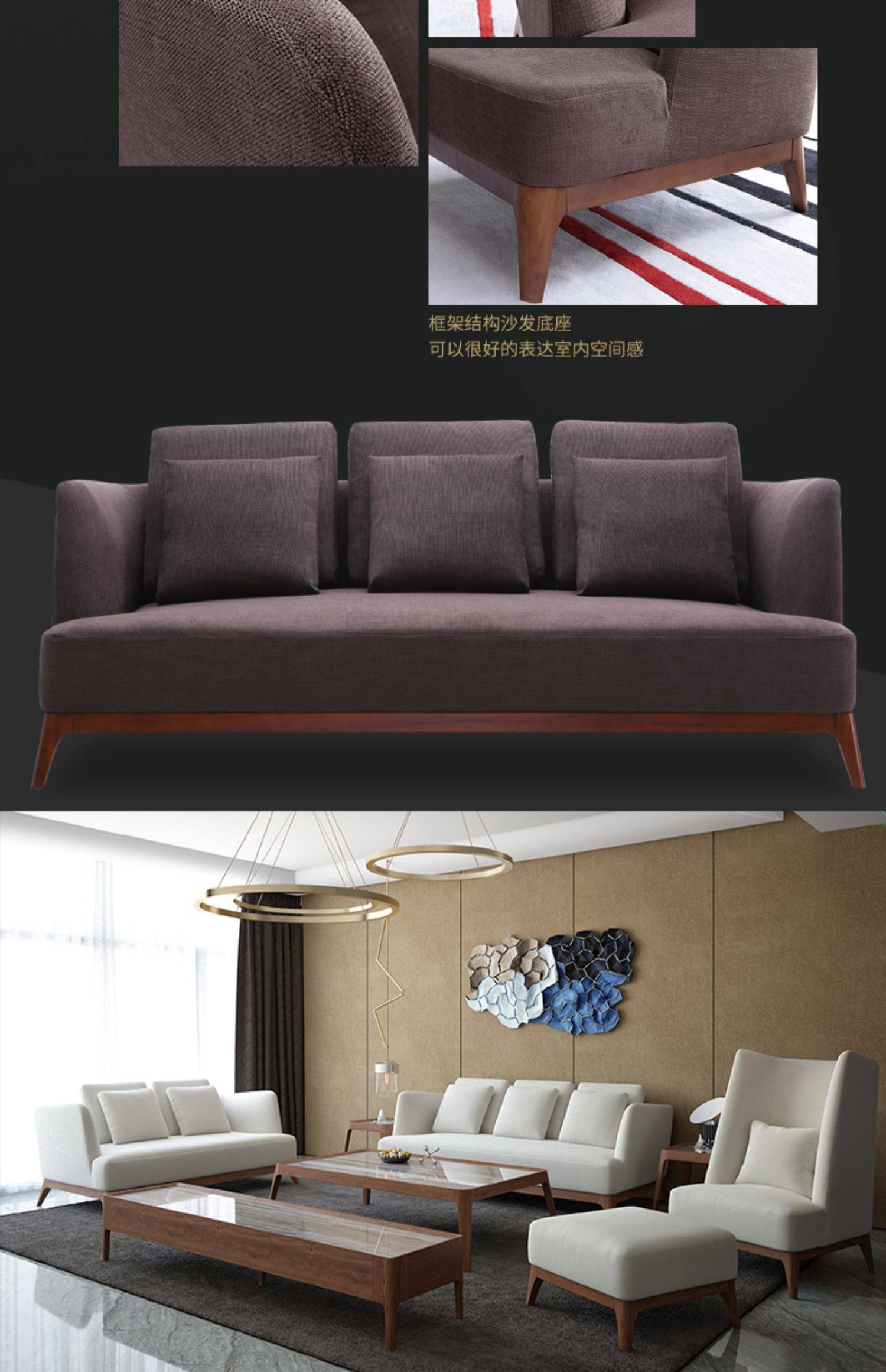 Neri & Hu Nordic тканевый диван для небольших квартир, съемный и моющийся, для трех человек поколение Комбинированный диван из массива дерева в простой гостиной B64