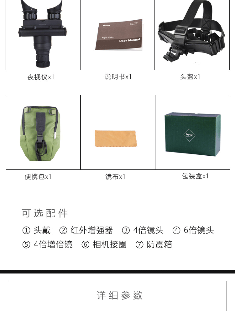Опционаруемые аксессуары: ношение головы, красный Внешний усилитель, 4 раза зеркало Голова, 6 раз зеркало Верх, 4 раза умножение зеркало Подключение камеры, подключение к мобильному телефону и т. Д.
