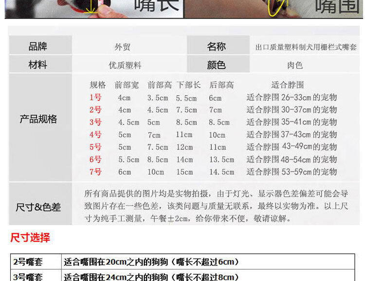 Метод измерения рта:1. Измерьте свои глаза низ Окружность квадратного круга(Самое толстое место); 2. Измерительный носик верх Окружность квадратного круга(Самое подробное место, то есть верх поверхность стандартный Покажите окружность рта у входа); 3. Собаке с коротким ртом нужен низ Расстояние от глаз до кончика носа;