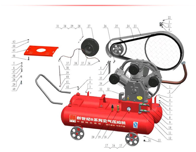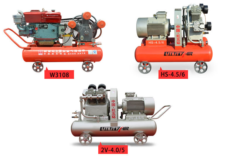 Красный Wuhuan Mining Machine 2V4.0 / 5 Поршневой воздушный компрессор с 6-полюсным электродвигателем мощностью 22 кВт с ремонтом пневматической отмычки