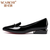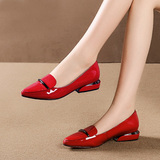 Sikiki туфли Женский широкий каблук Неудобный красный обувь светло Портал с острым носом лаковая кожа новая коллекция большой размер Женская обувь