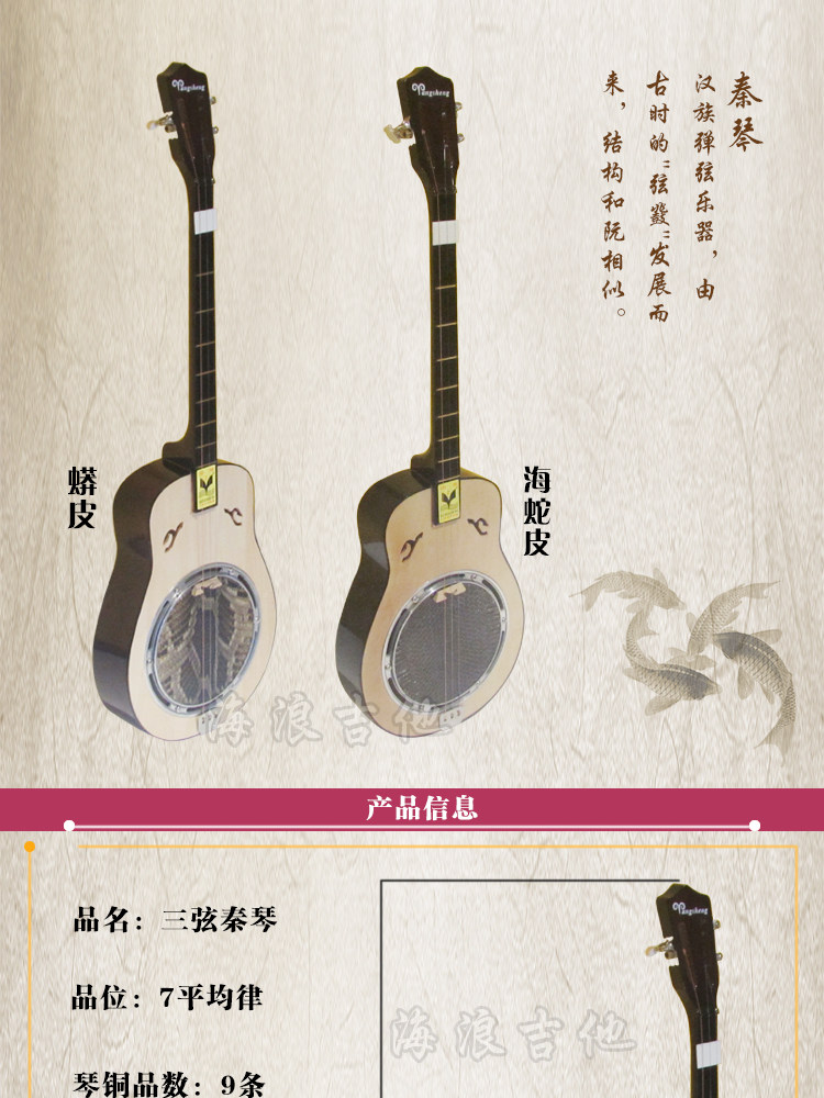 Гитара для серфинга оригинал Трехструнный музыкальный инструмент Qinqin, кожа питона, Qinqin, на талии, щипковый шнур, древний музыкальный инструмент