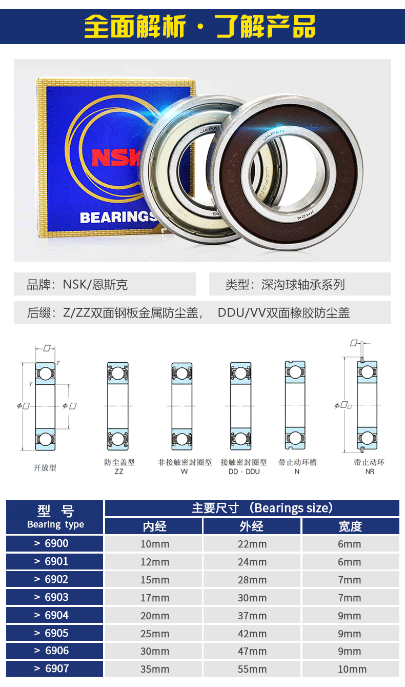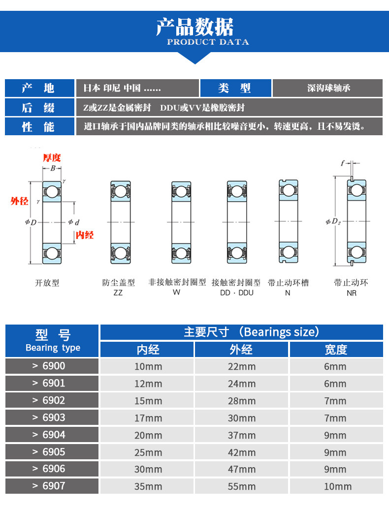 Ri NSK 9 9 6900 6901 6903 6904 6905Z6906ZZ Durs 咚