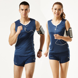 Спортивный костюм комплект мужские и женские Одежда для фитнеса для бега на марафоне для влюбленной пары Спортивные шорты-майки воздухопроницаемый Соревновательный костюм