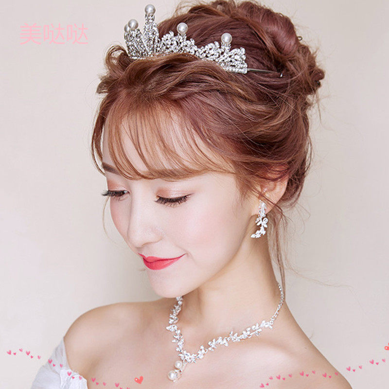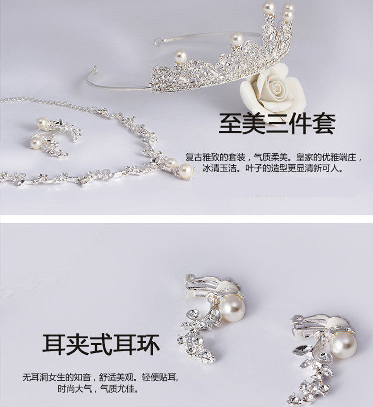 Арендовать новый Леди 3 накладки Корейский стиль свадебное Ювелирные изделия Корона Ожерелье Ухо Джуниор комплект Свадебные аксессуары
