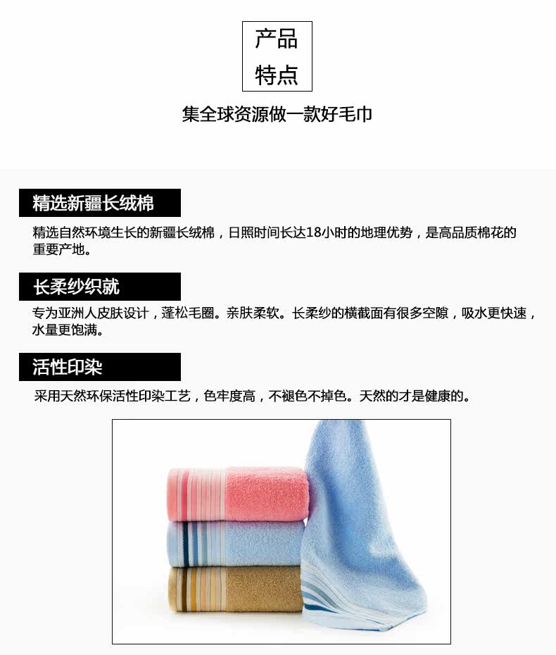 Двойной свет полотенце чистый хлопок Вымойте лицо для взрослых домашних хозяйств 3 полосатый Удлините полотенце для лица утепленный мягкий Абсорбирующее полотенце