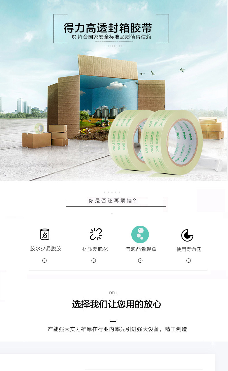 Deli Stactive Ontage 30203 Box лента прозрачная ленточная лента пакет Лента курьерская клейкая бумага высокая Прозрачная ширина 48 -мм таобао пластика широкая С коробкой пакет Притворяться, чтобы не оставлять клей