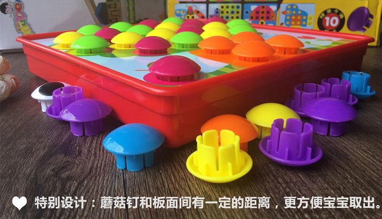 Детям полуторагодовалого возраста не нужно думать о том, как построить лягушек, птиц, домики, машины, книги и т. Д. плафон , Просто нажимайте, тяните, тяните и тяните эти грибные гвозди, чтобы играть верх Некоторое время.