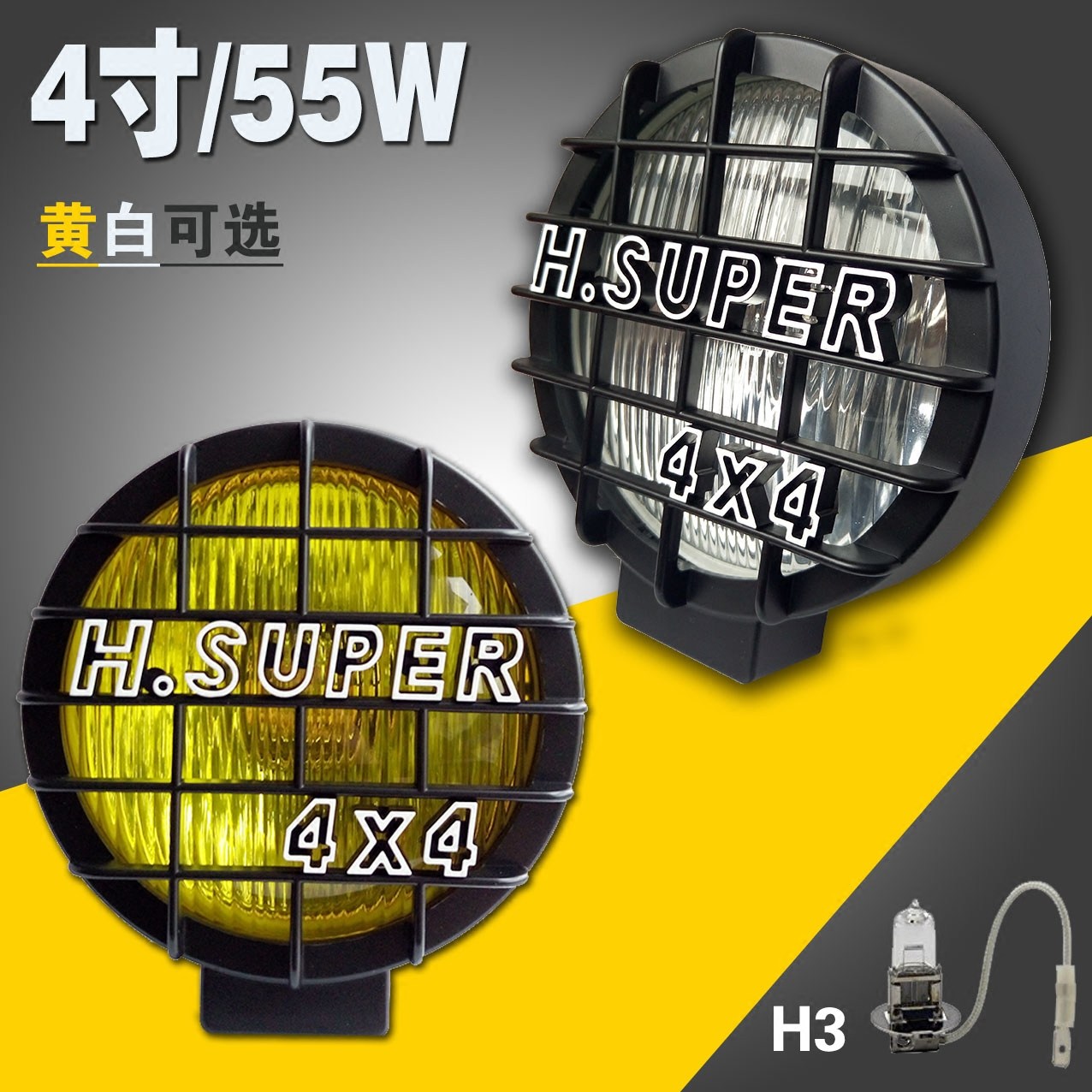 Цвет: 4 дюйма / 12 В / 55 Вт круглый белый Свет 1 шт, Круглый желтый свет 4 дюйма / 12 В / 55 Вт 1 шт