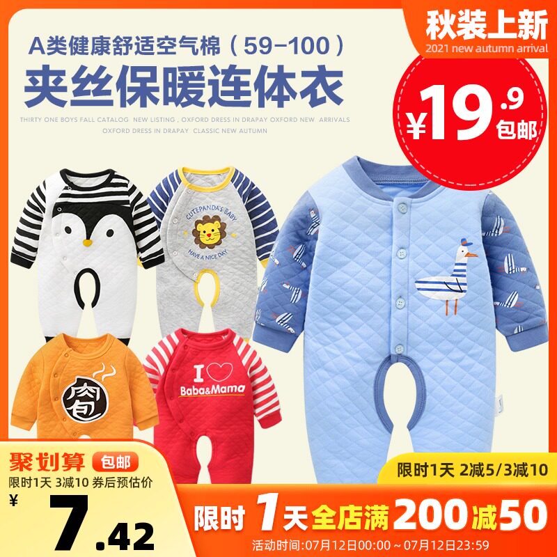 На младенца Цельный зажим для одежды хлопок утепленный демисезонный Упаковать воздух хлопок Осенний комбинезон мужской новый Родить дочь детские удерживающий тепло Зимняя одежда