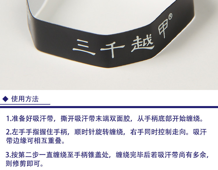 4.Используйте оставшийся пот -поглощающий ремень вдоль конуса ручки корпус По часовой стрелке стрелка Параллельное усиление и липкое.Примечание. Регулировать интенсивность соответствующим образом при ране.