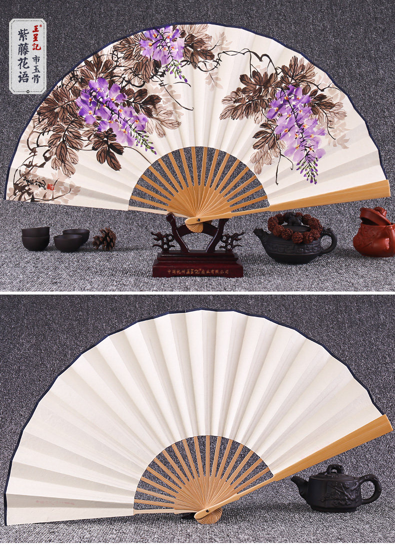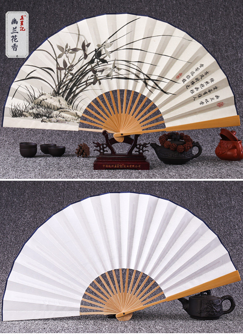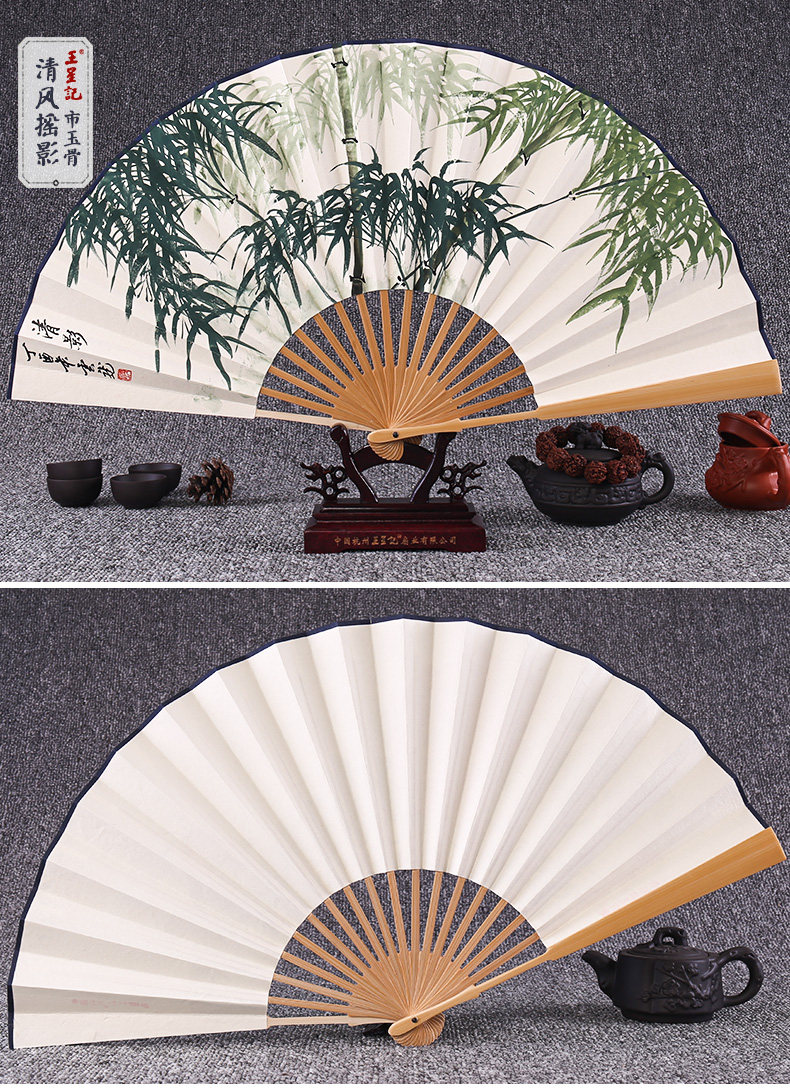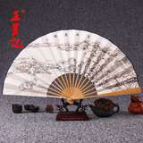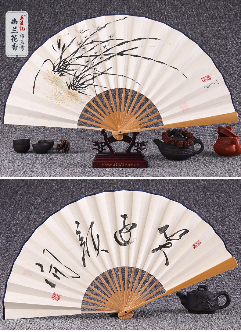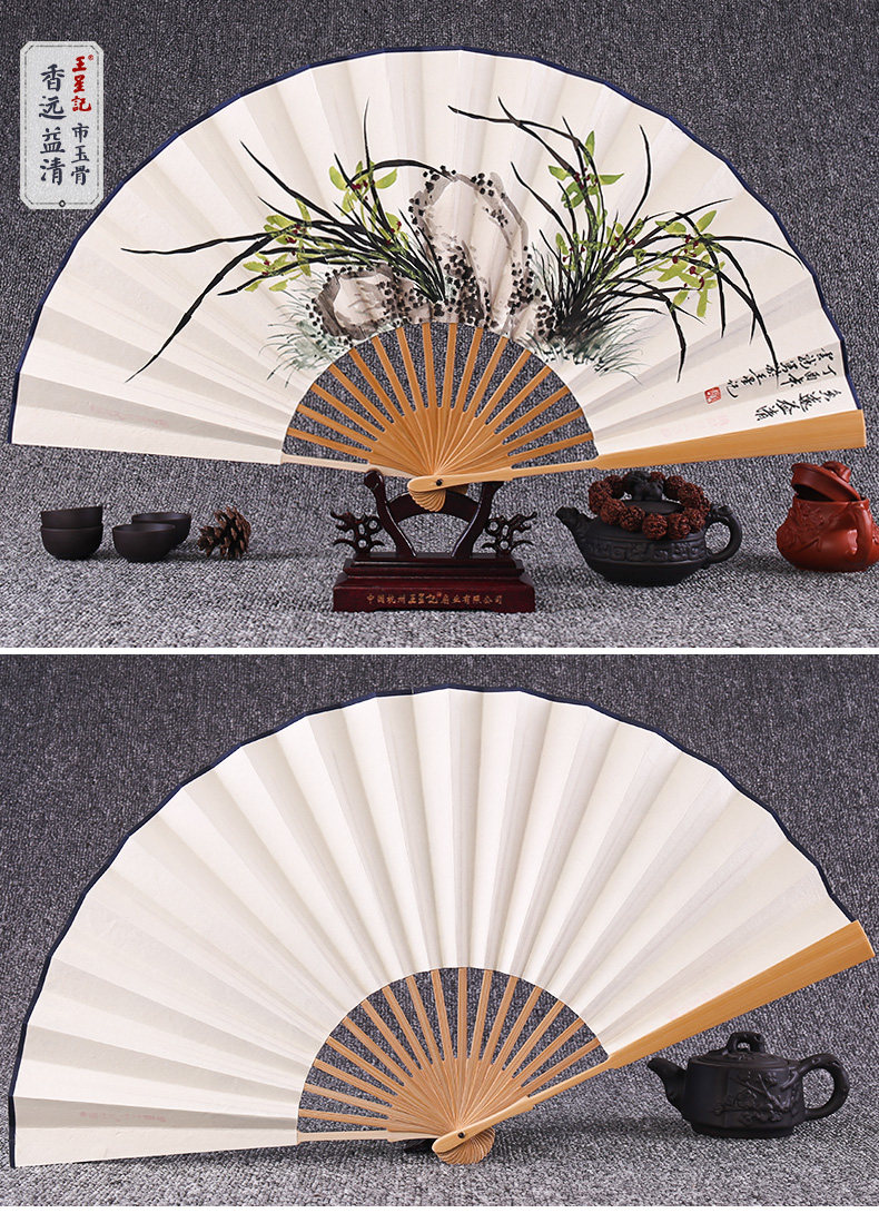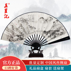 Веер Ван Синцзи Бумажный веер Раскрашенный вручную Складной веер Yuzhu мужской китайский стиль мужской Вентилятор Ancient Craft Xuan Paper Collection Подарочный веер