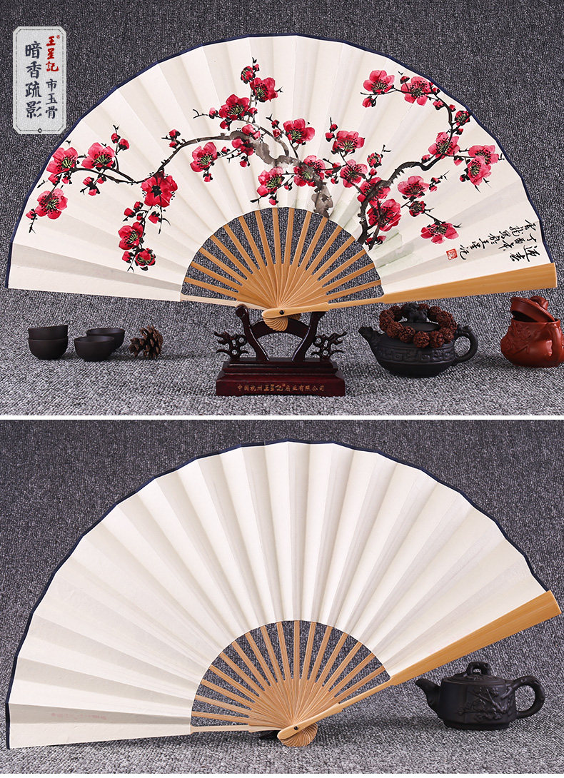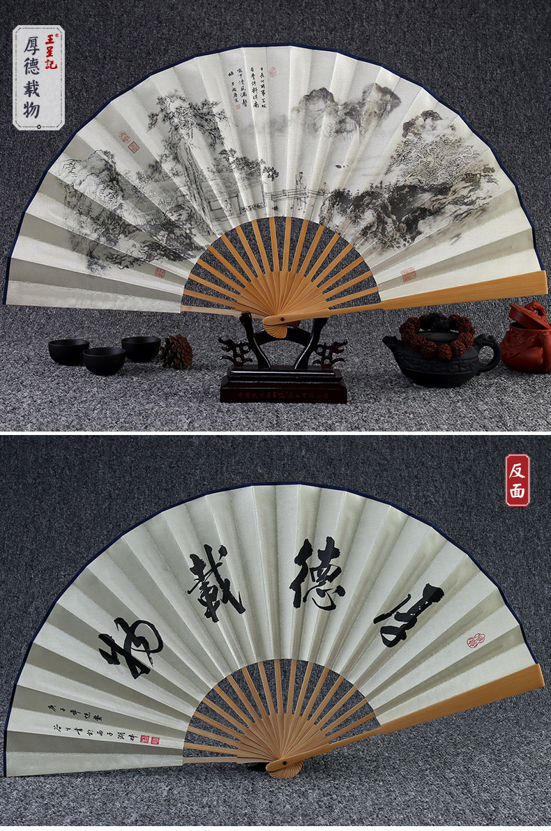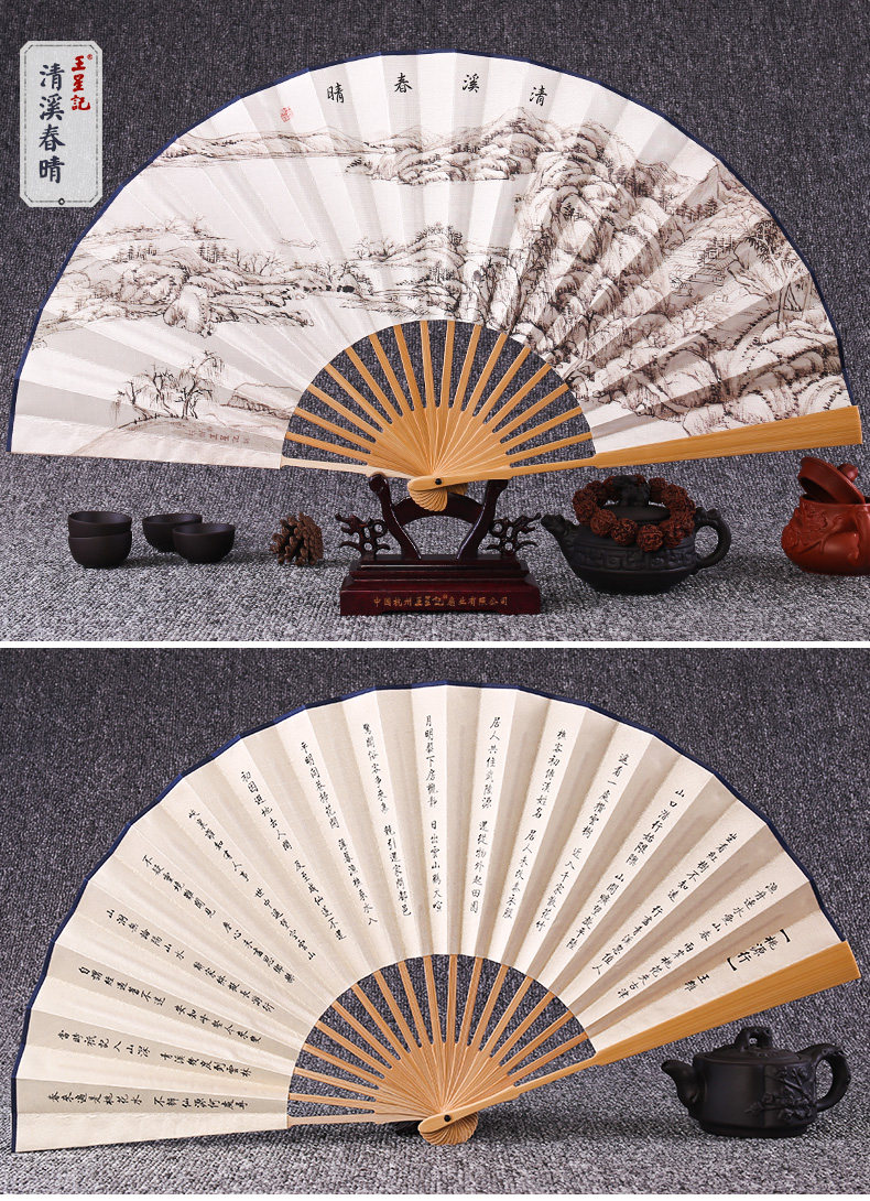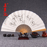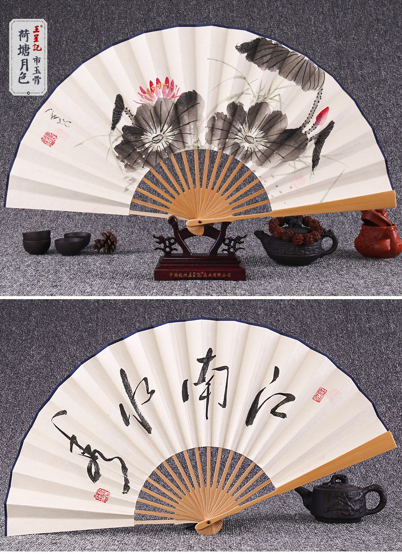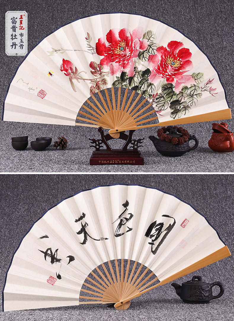 Веер Ван Синцзи Бумажный веер Раскрашенный вручную Складной веер Yuzhu мужской китайский стиль мужской Вентилятор Ancient Craft Xuan Paper Collection Подарочный веер