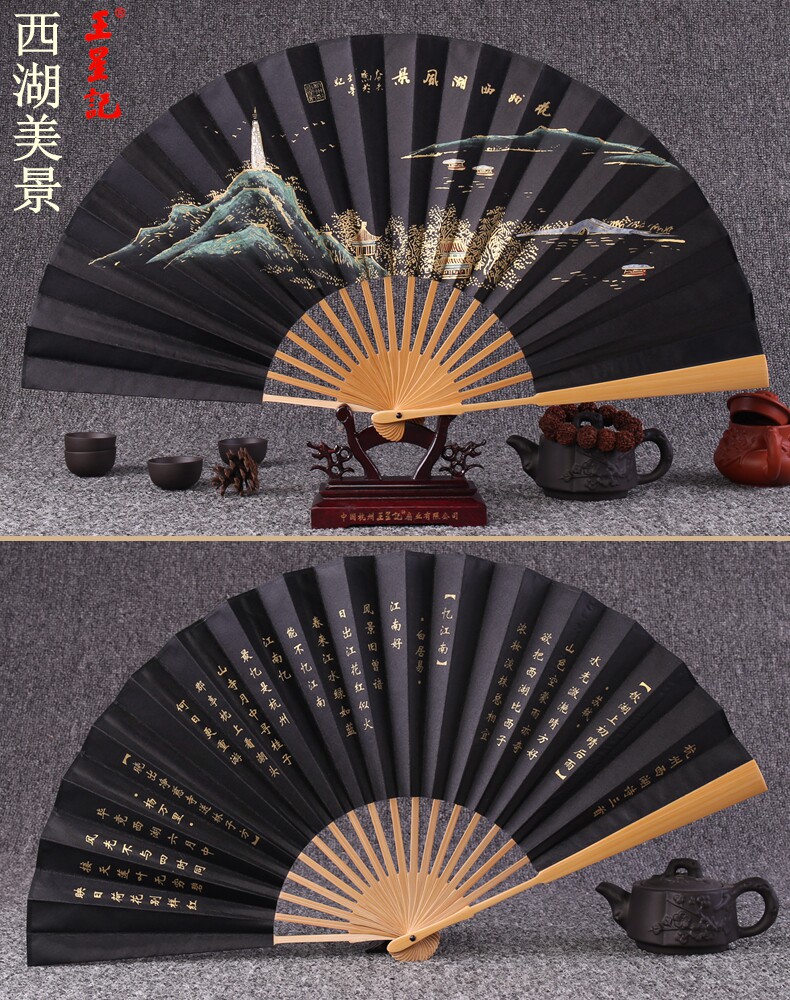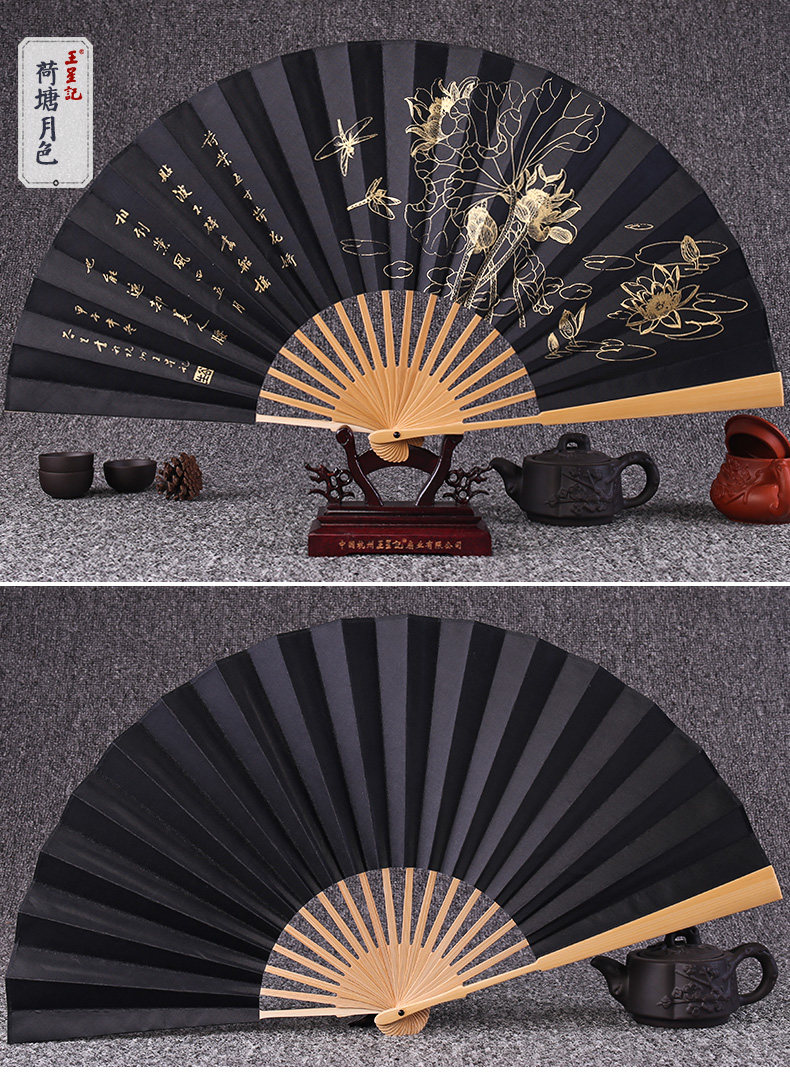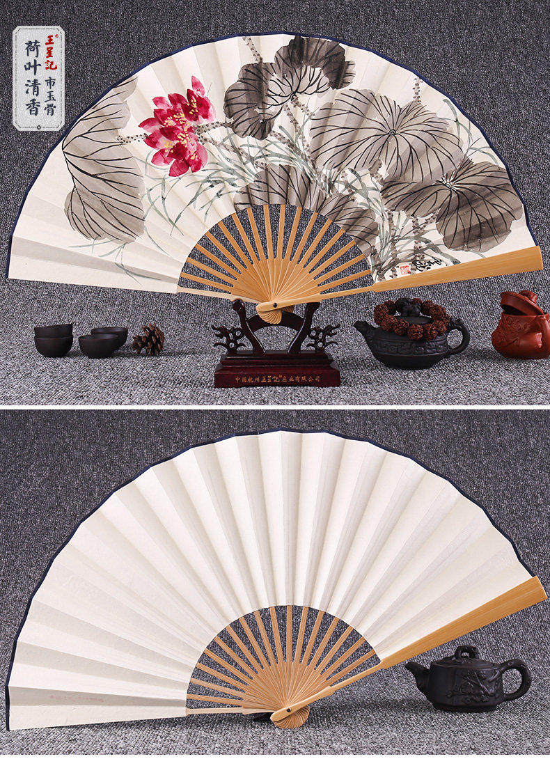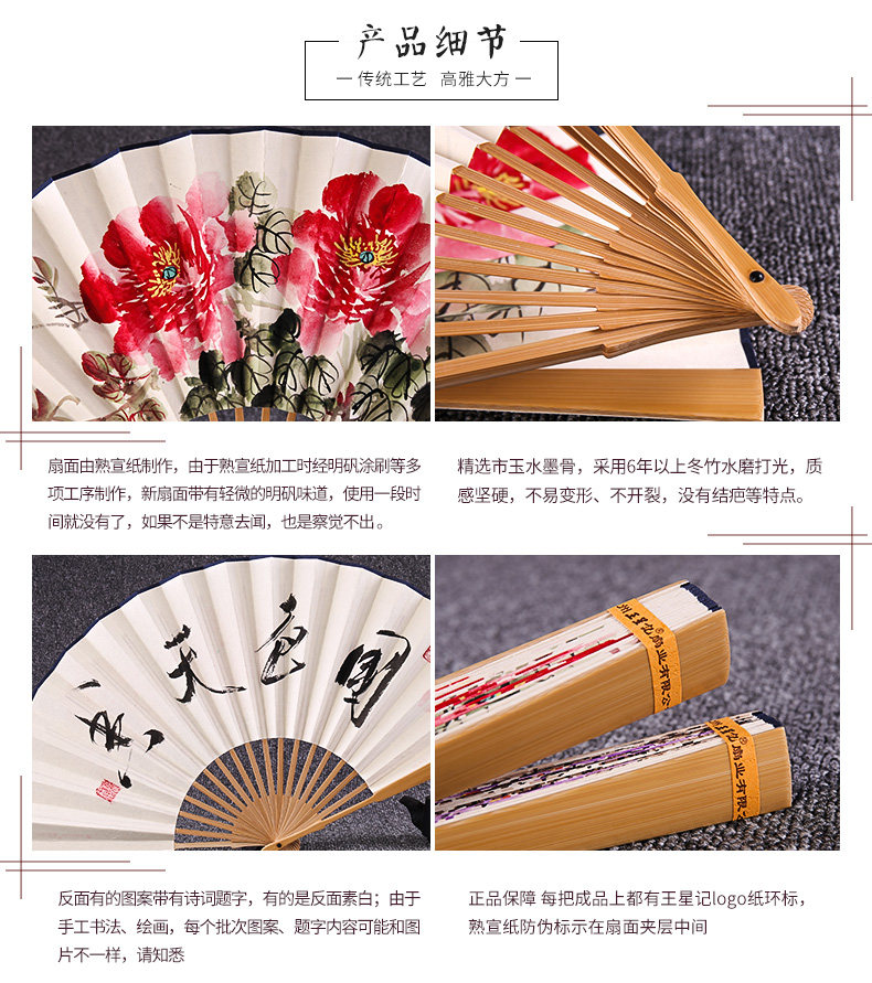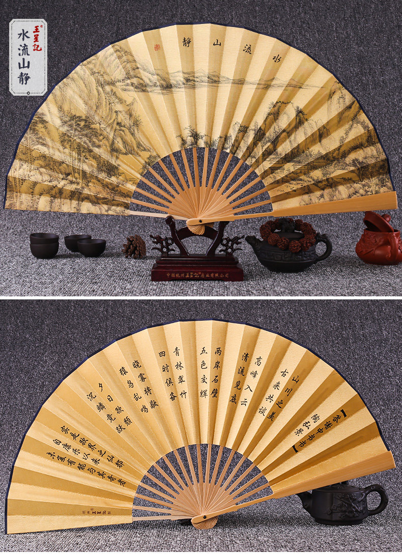 Веер Ван Синцзи Бумажный веер Раскрашенный вручную Складной веер Yuzhu мужской китайский стиль мужской Вентилятор Ancient Craft Xuan Paper Collection Подарочный веер