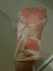 1.Положите ногу пластикового пакета в форме ноги в соответствии с вашей лодыжкой верх Разрежьте позицию.
