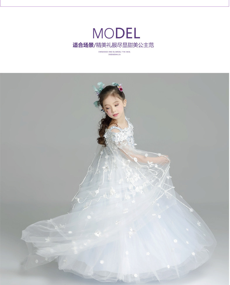 Платье девушки цветка на девочку для маленькой принцессы Юбка перетащите хвост Пышная пряжа на девочку Свадебное платье маленькая девочка hanfu super fairy подиум лето