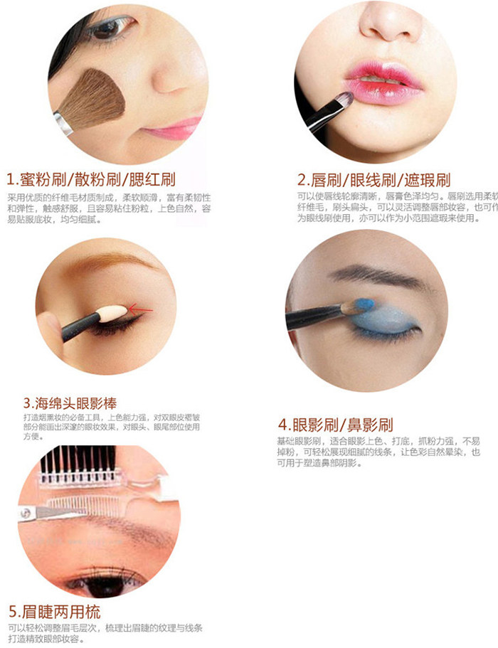 Полный бесплатная доставка по китаю оптовые продажи Не бросайте щетку для волос комплект 5 пакетов мягкий Удобный кисти для глаз тень румяна порошка губа щетка