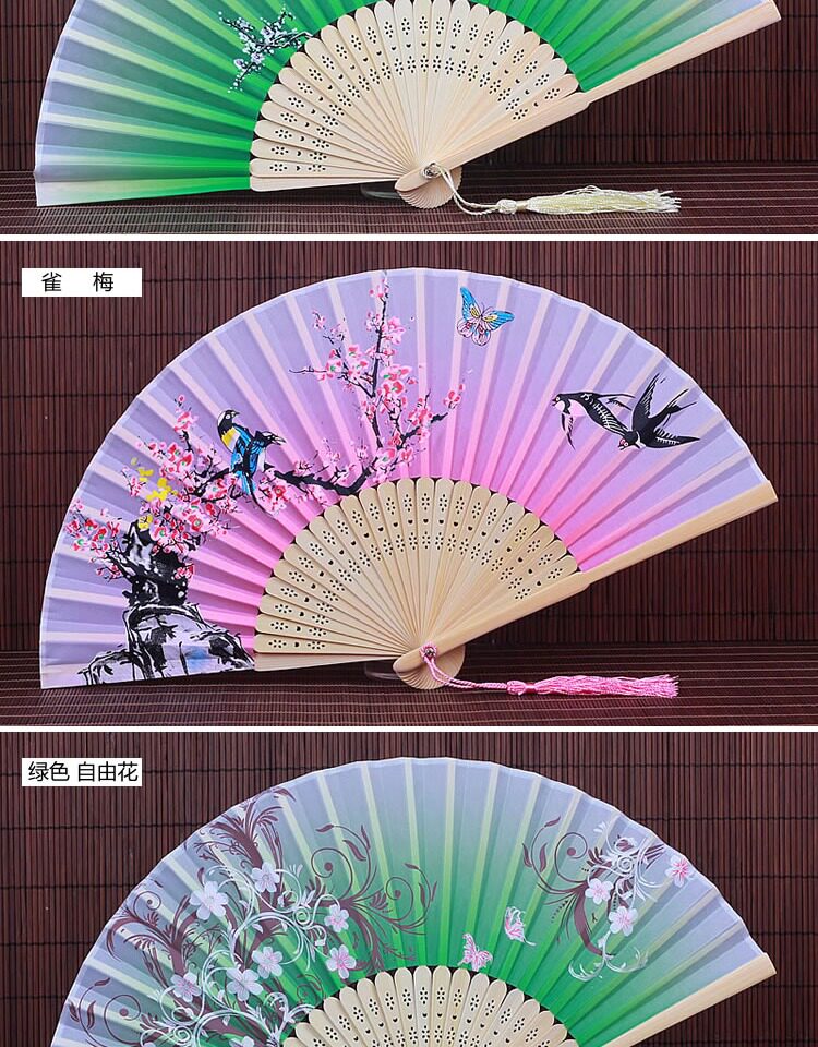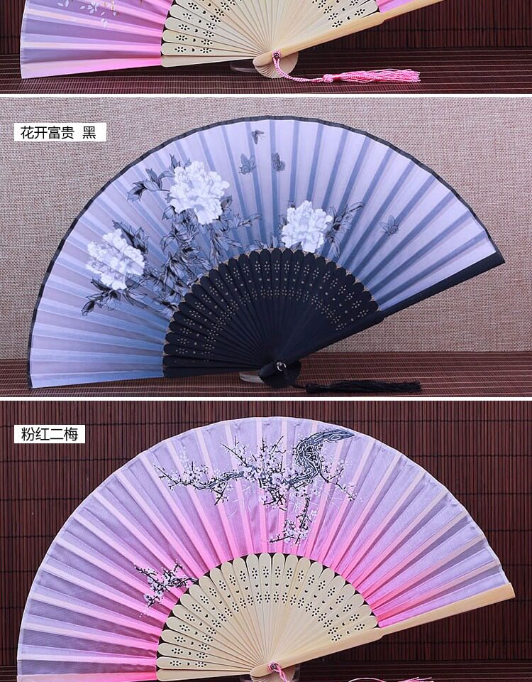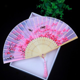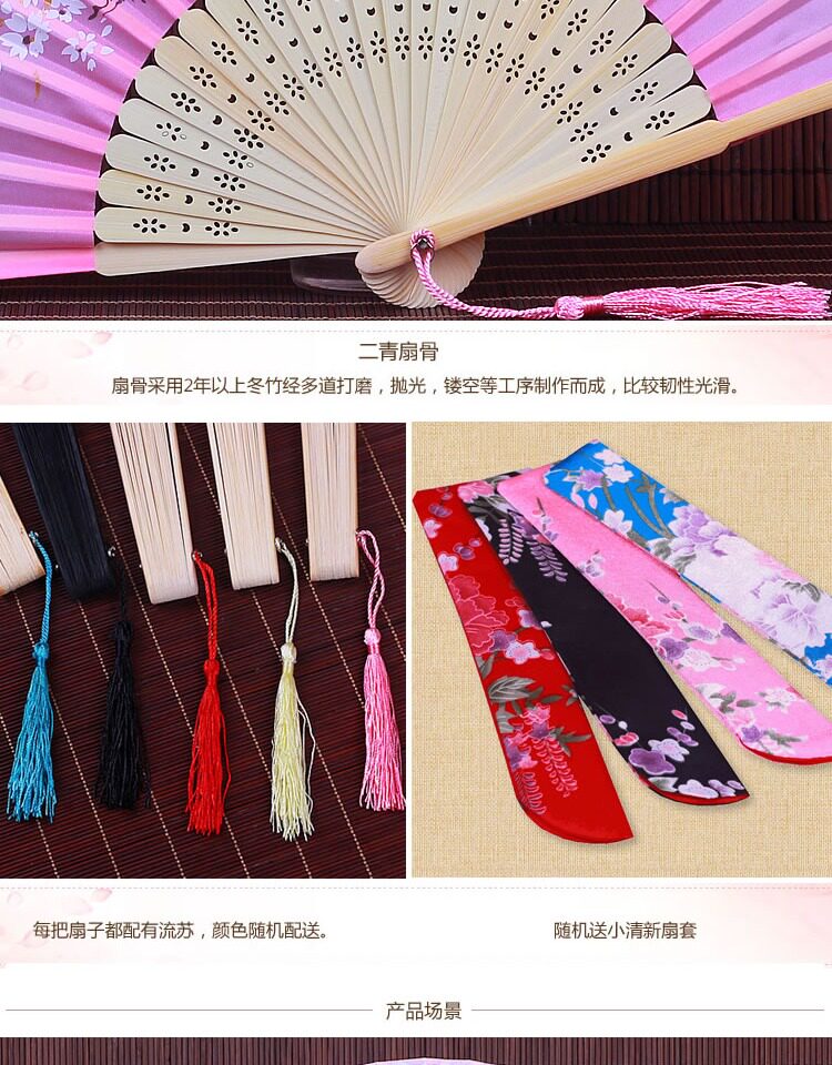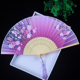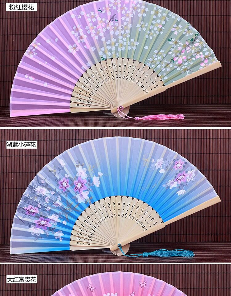 Китайский стиль винтаж Поклонник со складыванием Складной фанатный флаг классический Шелковый маленький вентилятор портативный с бахромой