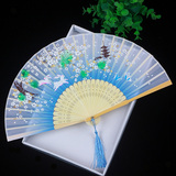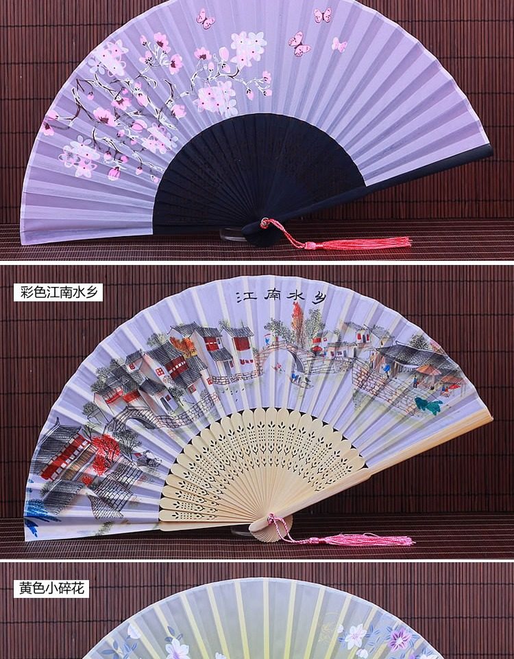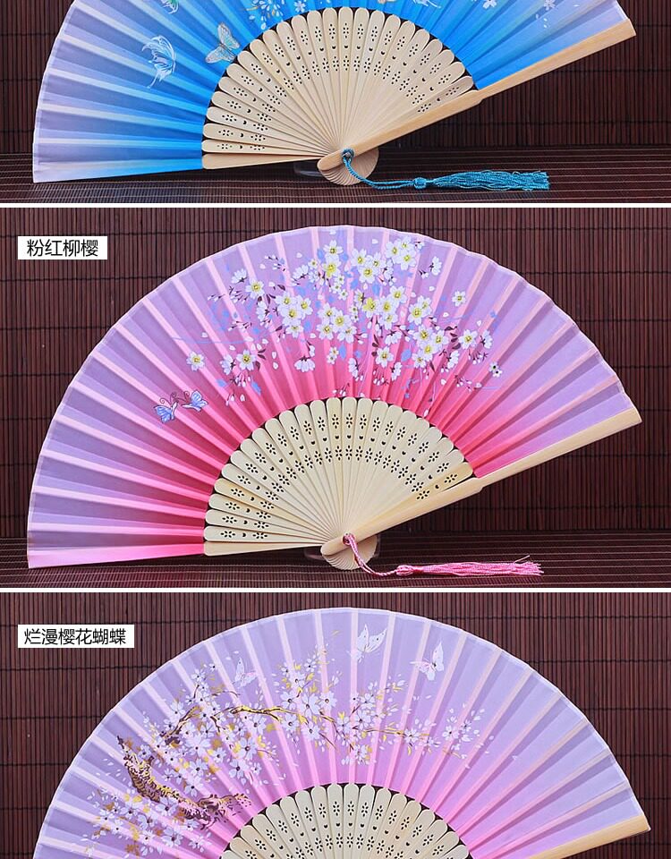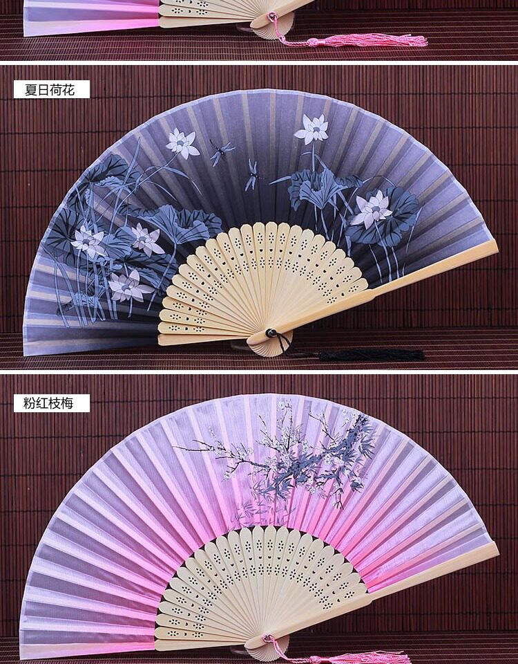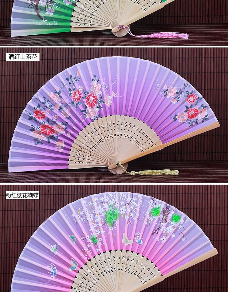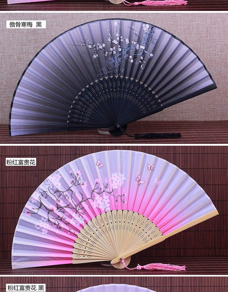 Китайский стиль винтаж Поклонник со складыванием Складной фанатный флаг классический Шелковый маленький вентилятор портативный с бахромой