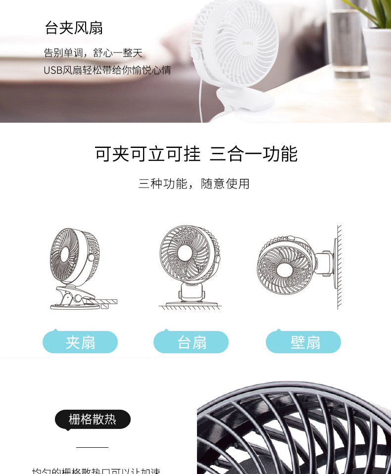 DELI USB Small Electric Fan Valoryitory верх Павильонный офис спальня тумбочка кровать верх Висит электрический вентилятор мини фланкан плагин настольный компьютер разбросан горячий воздушный вентилятор ветер большой лето