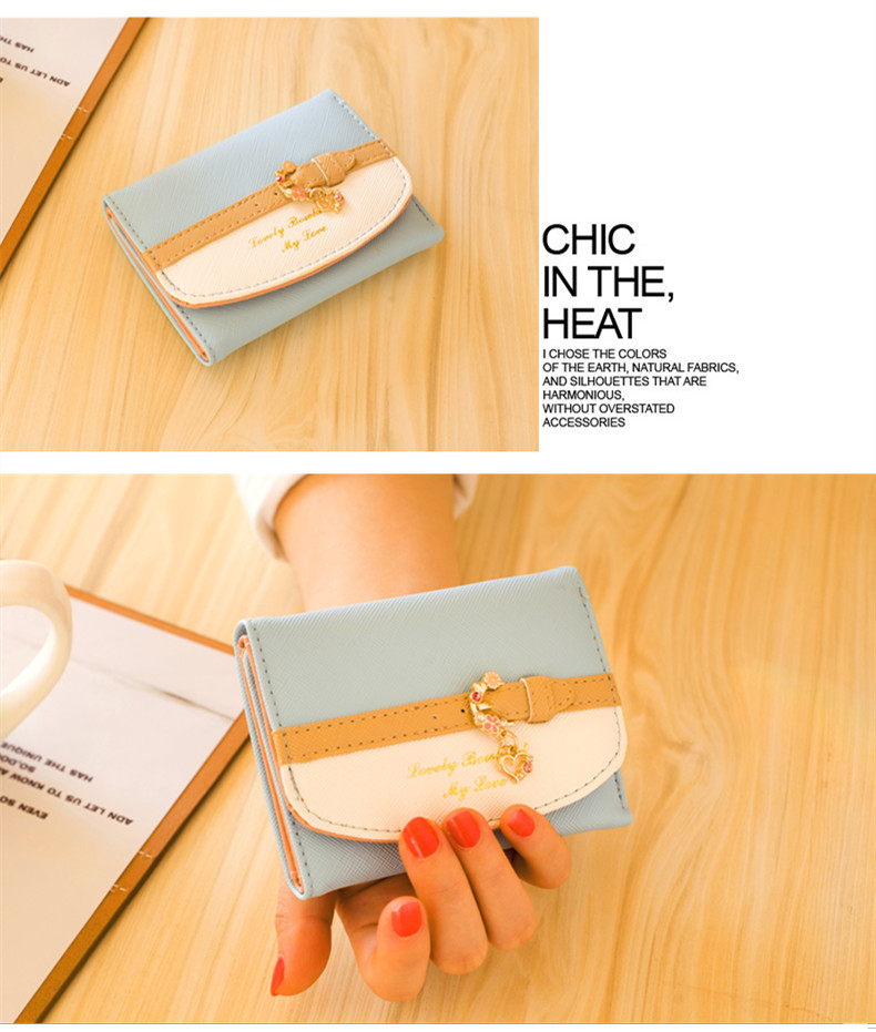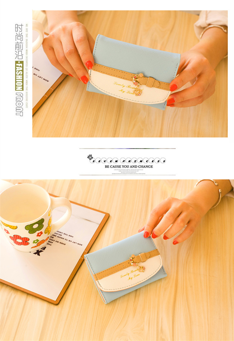 Танго женский Деньги пакет женский короткий корейская версия Милое маленькое изменение пакет Чисто новый Тонкий студенческий кошелек в три сложения из мультфильма контрастного цвета
