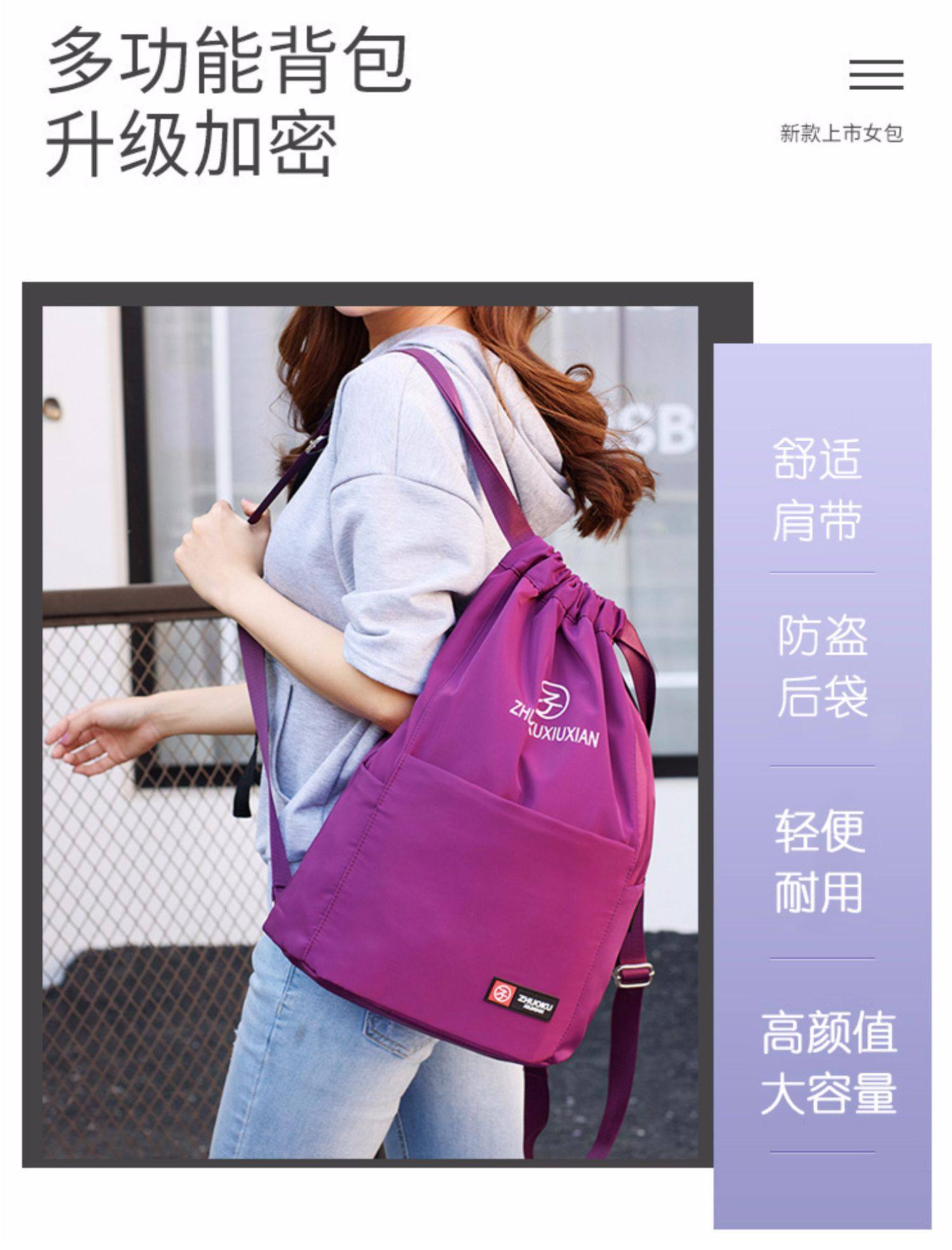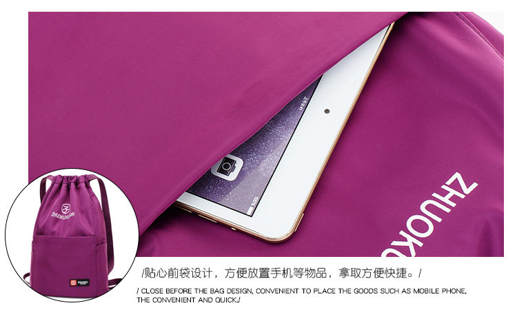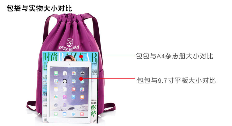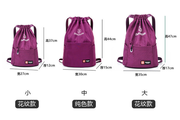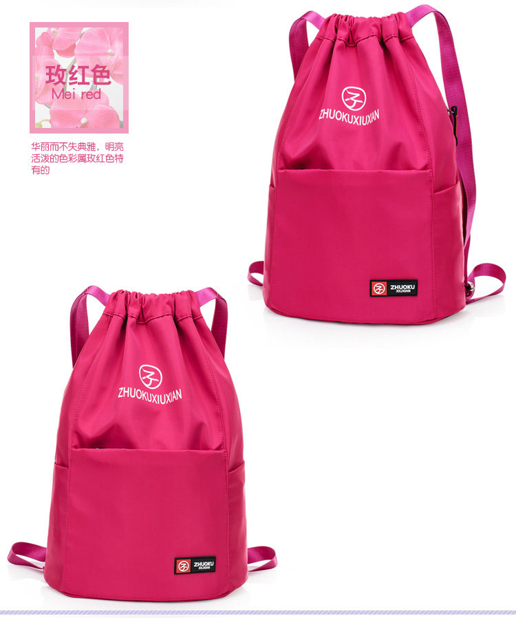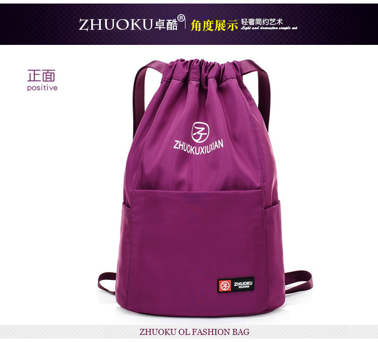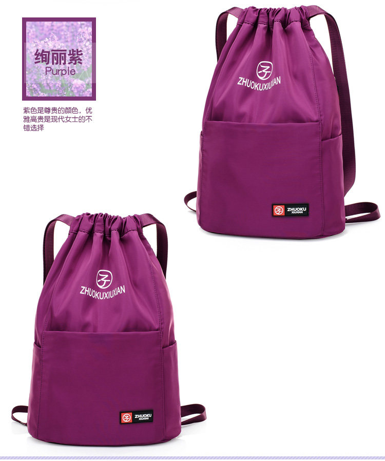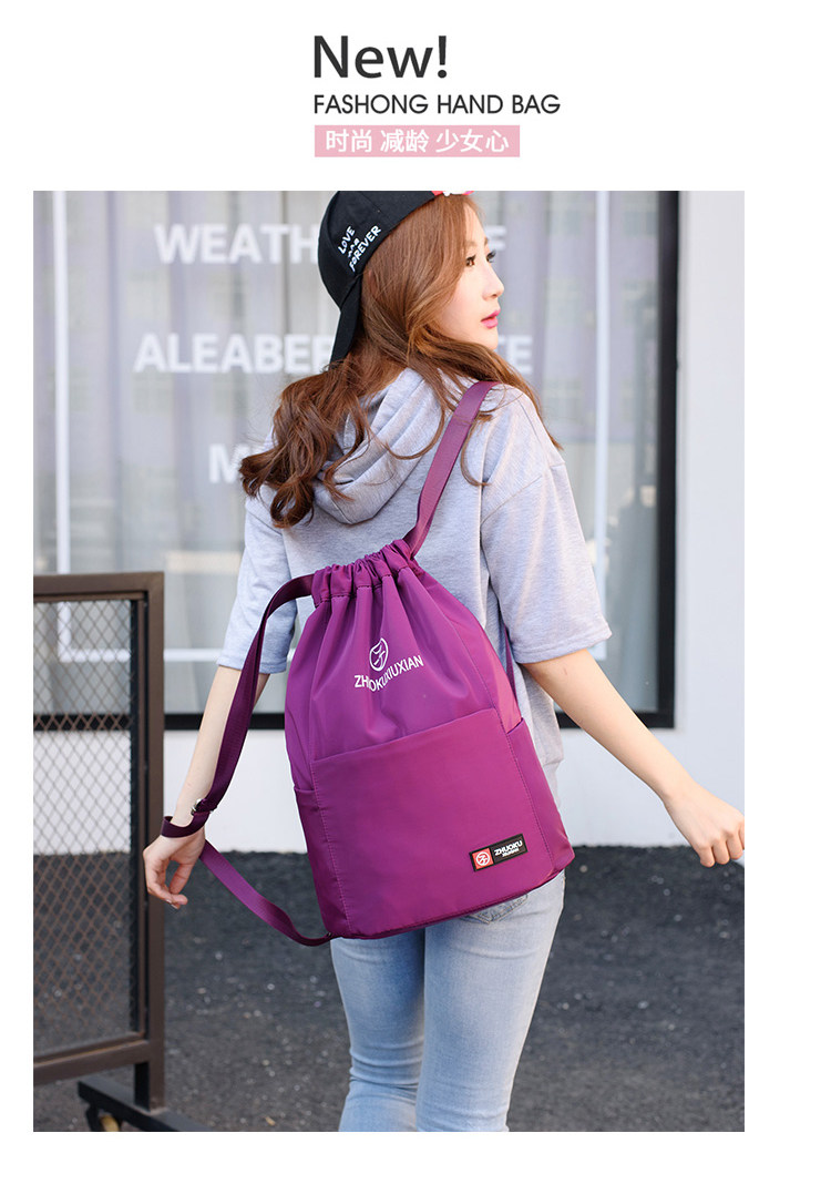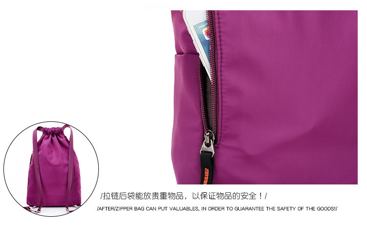 Со складыванием Оксфорд ткань рисует веревочку с карманами Заднее плечо пакет Девушки нейлоновые спортивные путешествия пакет Большая емкость пакет