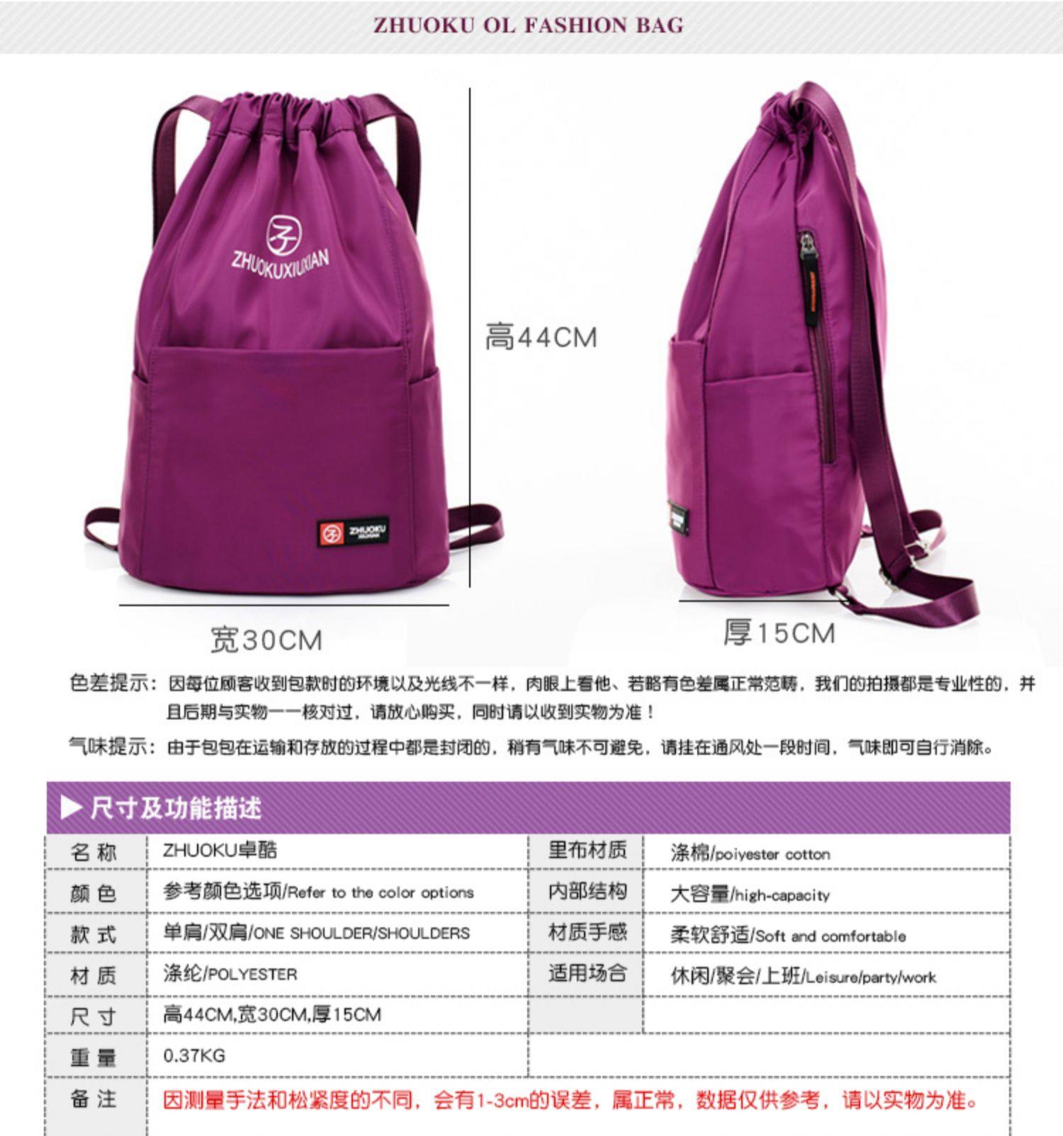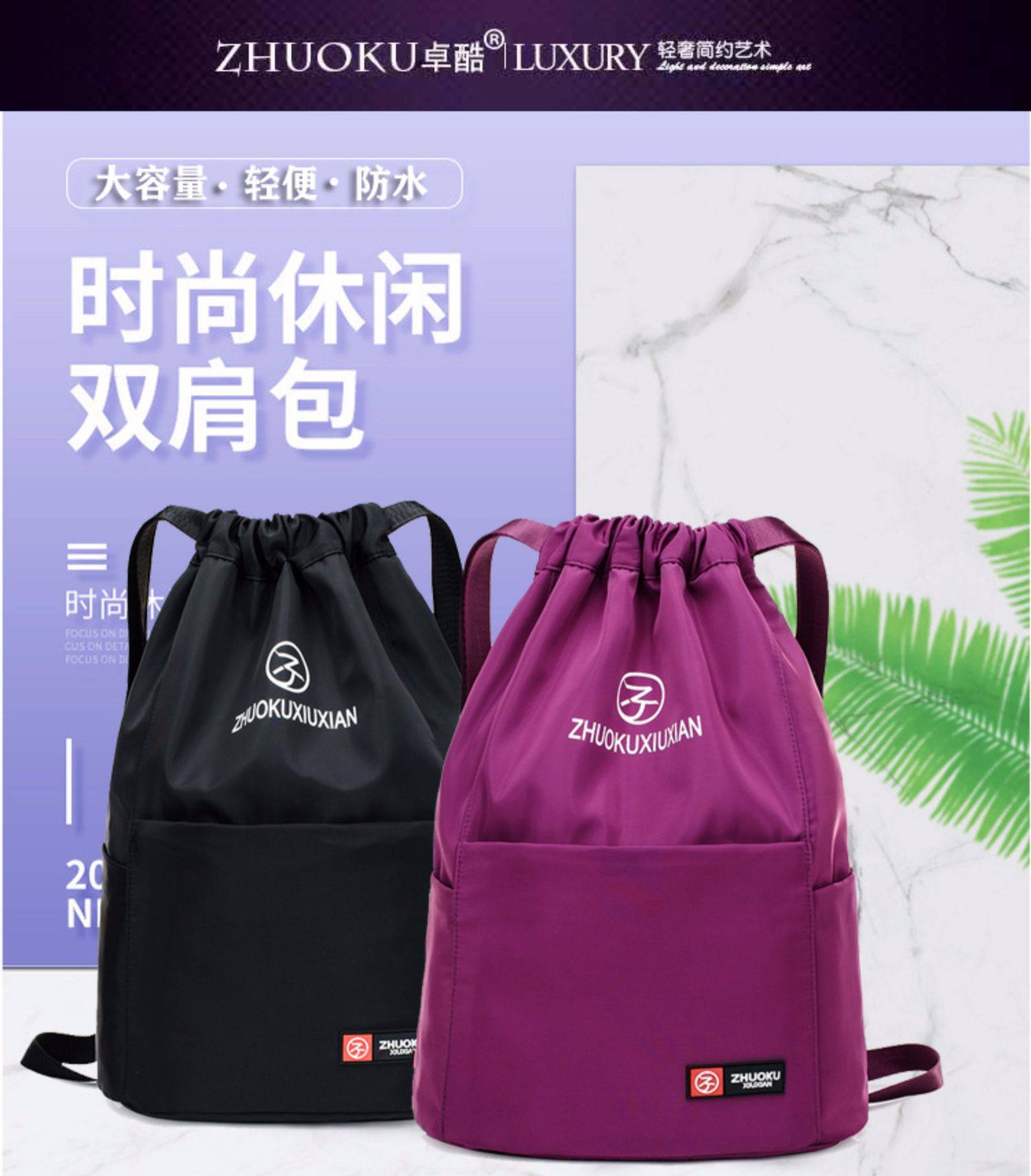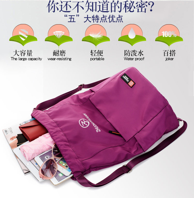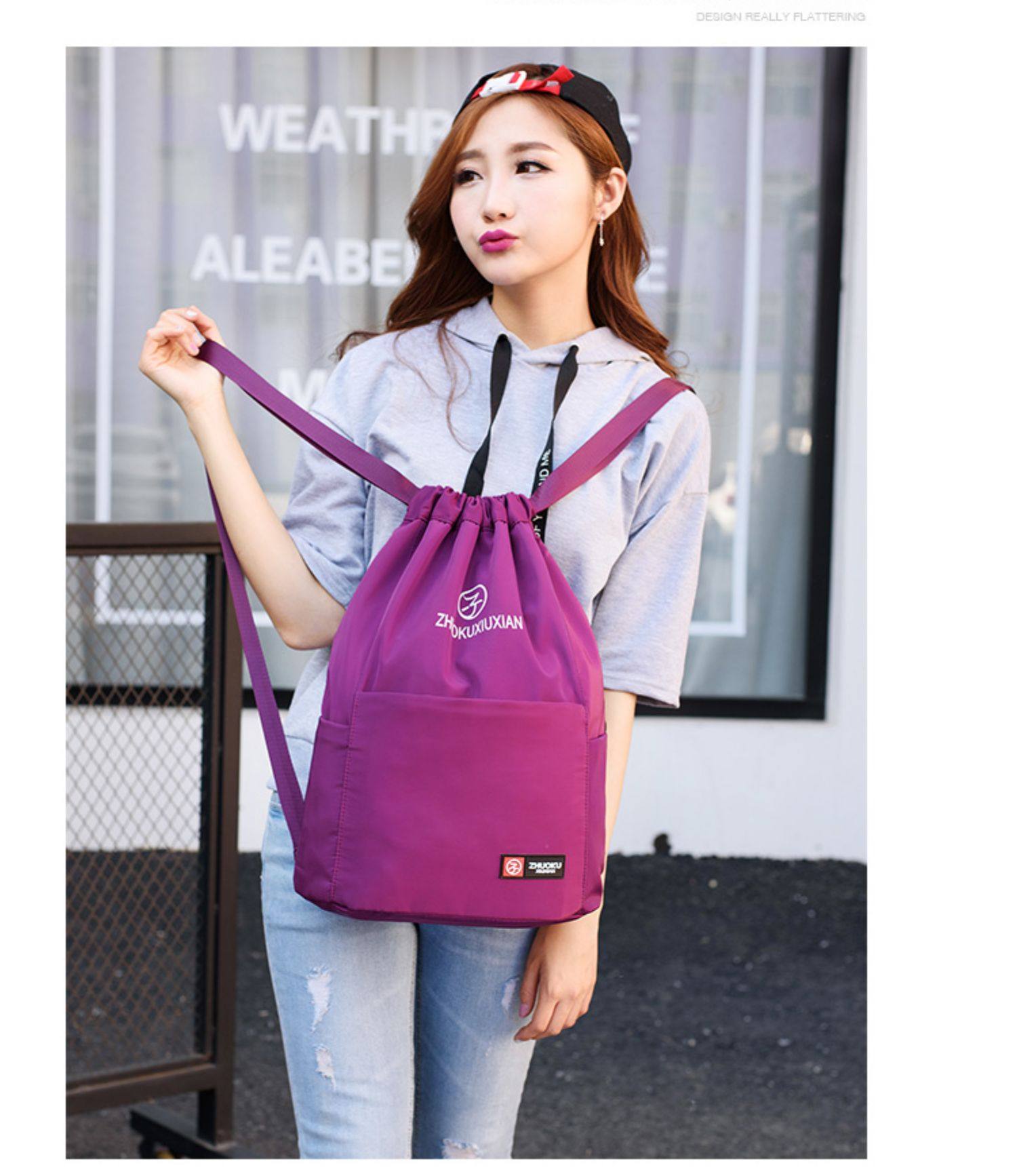 Со складыванием Оксфорд ткань рисует веревочку с карманами Заднее плечо пакет Девушки нейлоновые спортивные путешествия пакет Большая емкость пакет