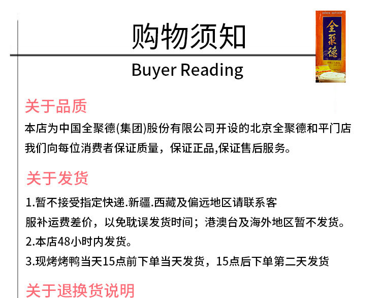 Вкус: Свежая жареная утка 4 в итоге срок годности, содержит Торт соус, 2 часа одного города на пятом кольце в Пекине слева справа в подарок Достигать, В день пятого кольца в Пекине, 48 часов иностранных провинций и городов слева справа прибыть, Отдаленные районы (деревни, поселки, города, города) 60 часов слева справа