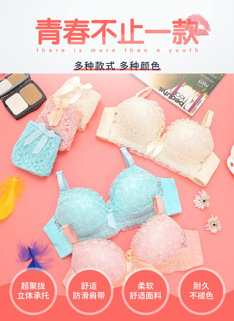Кружевной сексуальный бюстгальтер собирает маленькую грудь, чтобы закрыть грудь студентки высокая Средняя девушка без Нижнее белье нижнее белье комплект Женский худой