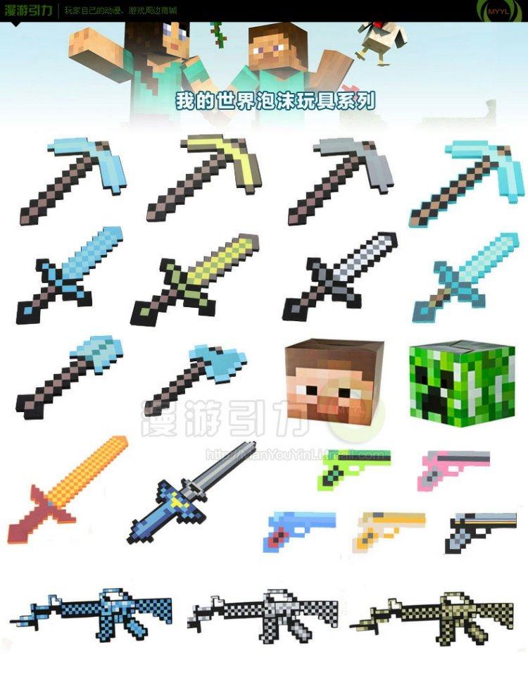 Мое мировое пенопольное оружие Diamond Slassman Scrubs Hear Head Met of Ore Game Spring Model мужской ребенок