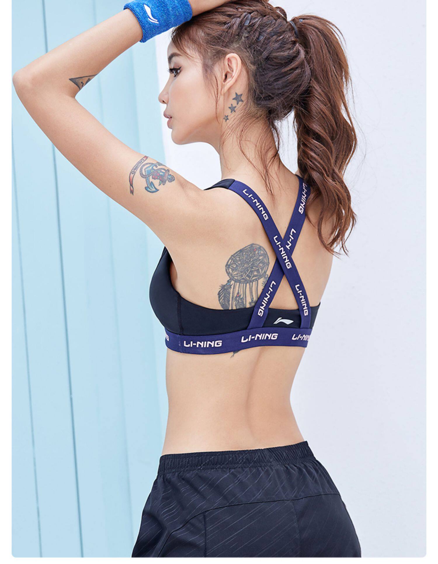 Li Ning Спортивное белье Женский Абонезащитный бегущий Йога Одежда Фитнес Бюстгальтер Оборона низ Вертикальная спина, чтобы носить бюстгальтер