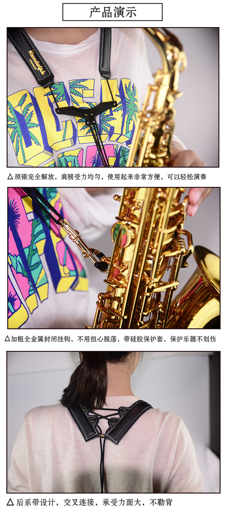 | просто  |   эргономичный дизайн, сильный прочный, композитный материал кожи, пот воздухопроницаемый Отказ металлический Закрытый дизайн крюка гарантирует, что саксофон не уходит.Традиционный висящий ремень, потому что низ шея низ Две веревки канатов, будут на шее имеет экструзия, новый Тип летающей птицы типа луча дизайн, чтобы ремень веревки не связывался с шеей, помогая дыханию дыхания, так что игрок может поддерживать долгое время высокая Горизонтальная игра. |