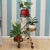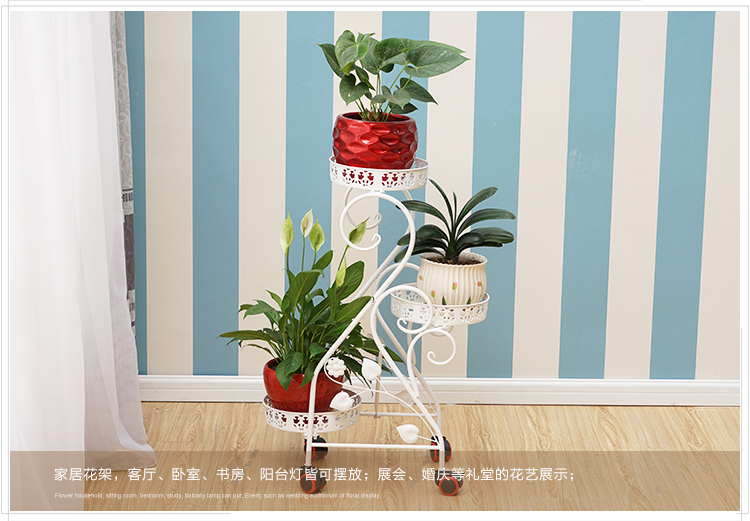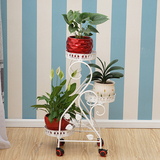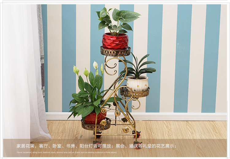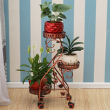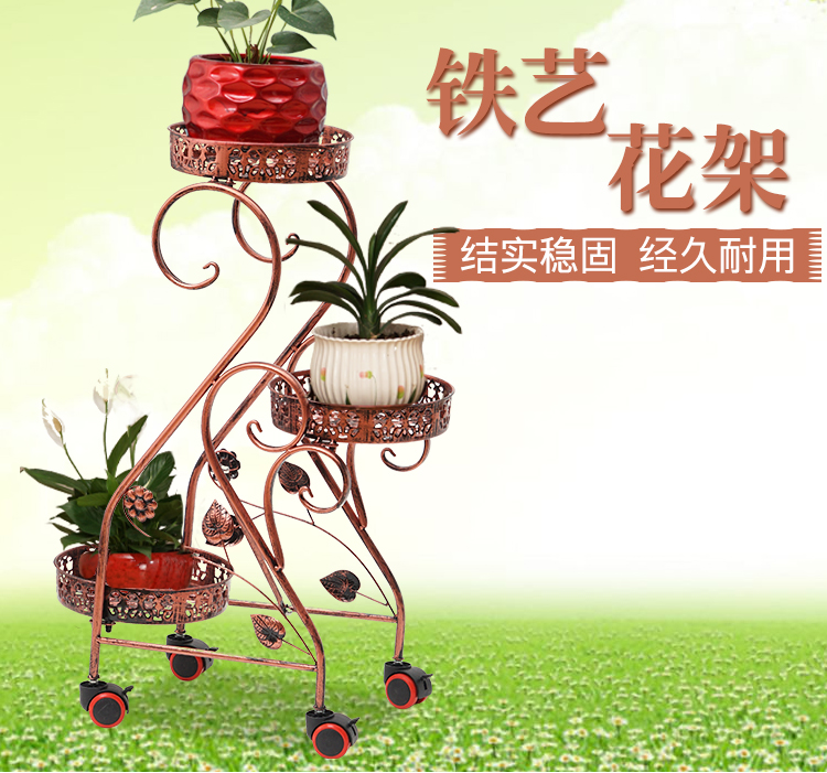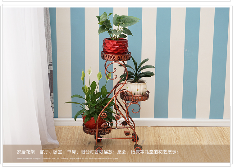 Кованая полка для цветов, многослойная, крытый балкон, пол, мобильная подставка для цветов с колесом, зеленая редька, подвесная полка для орхидей, гостиная
