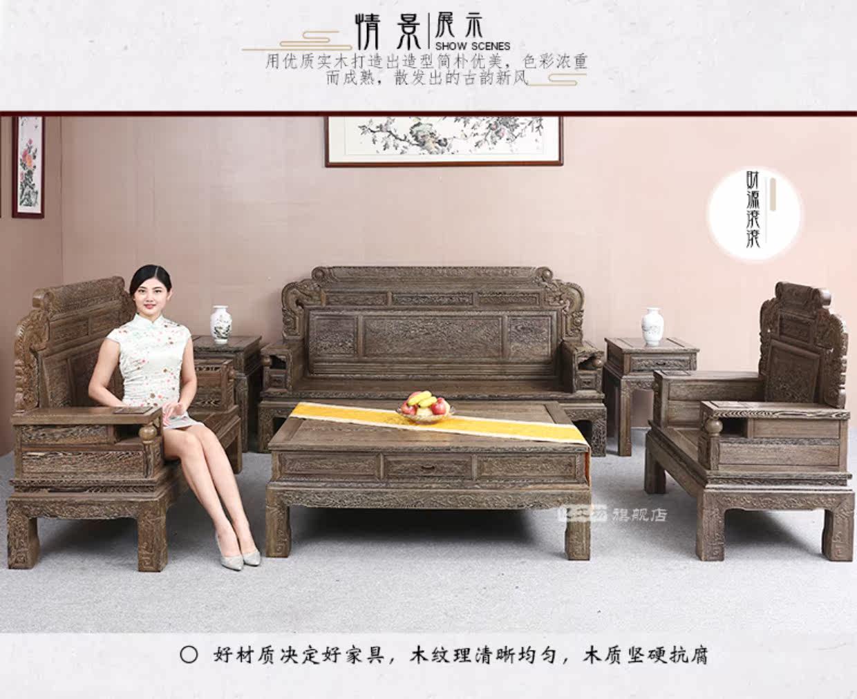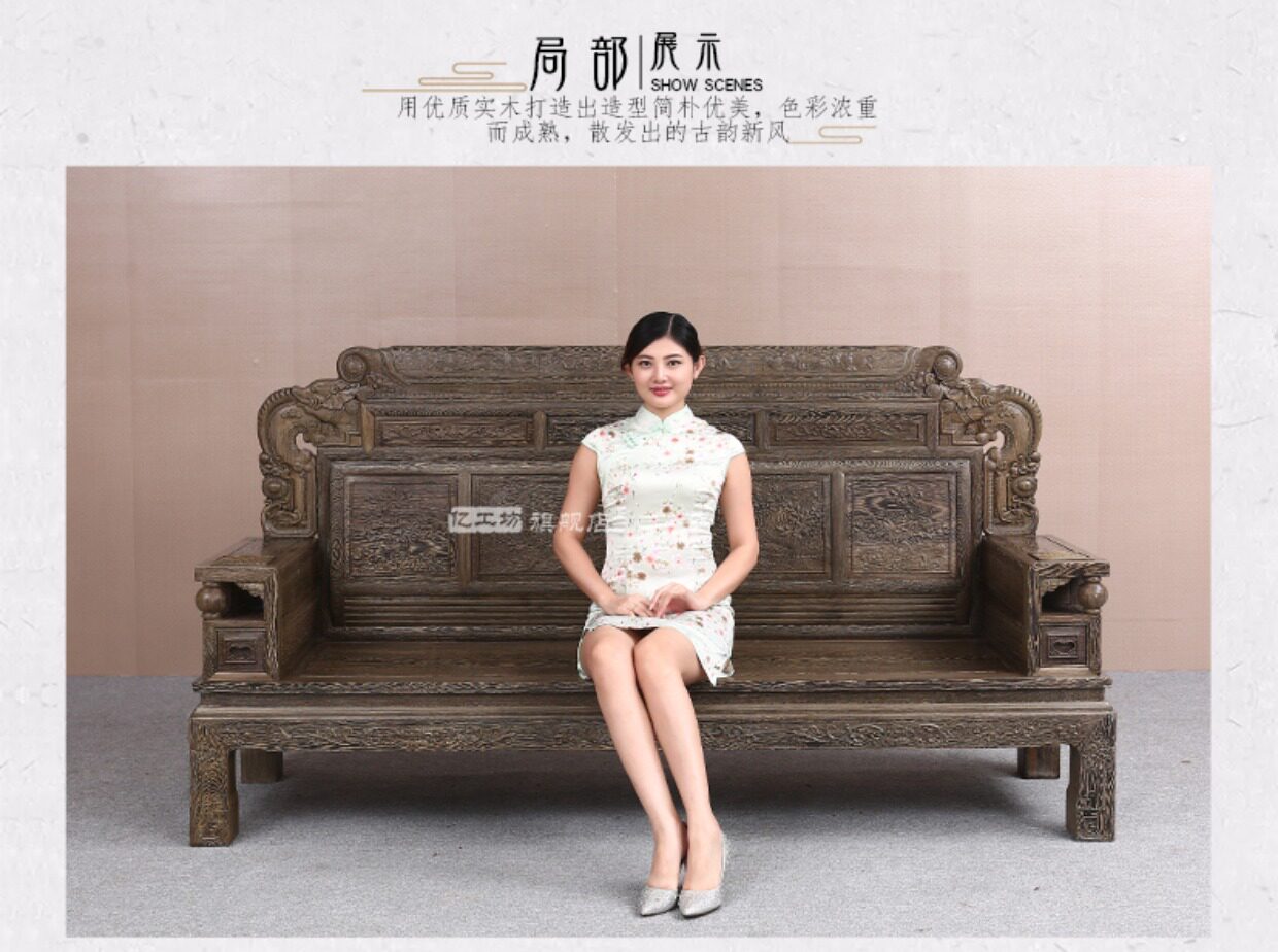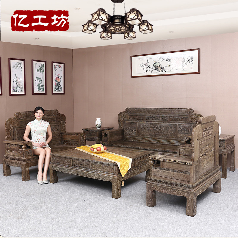 Куриное крыло И Гунфан из дерева финансирует вздымающийся диван из массива дерева копия Антикварная мебель красный Комбинированный диван в гостиной из дерева