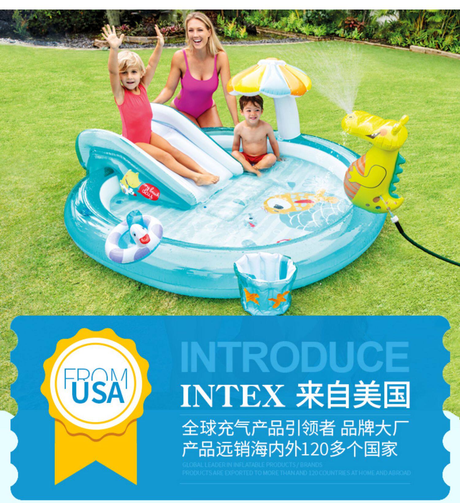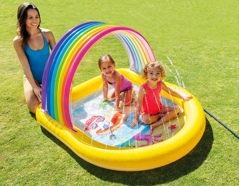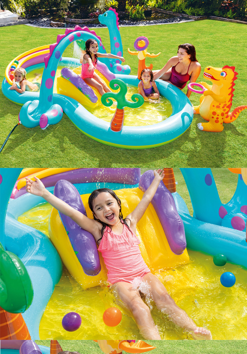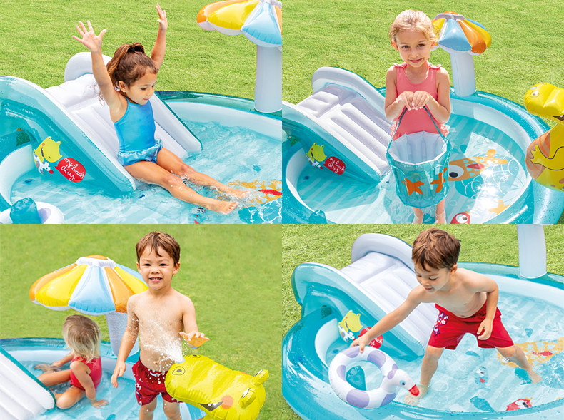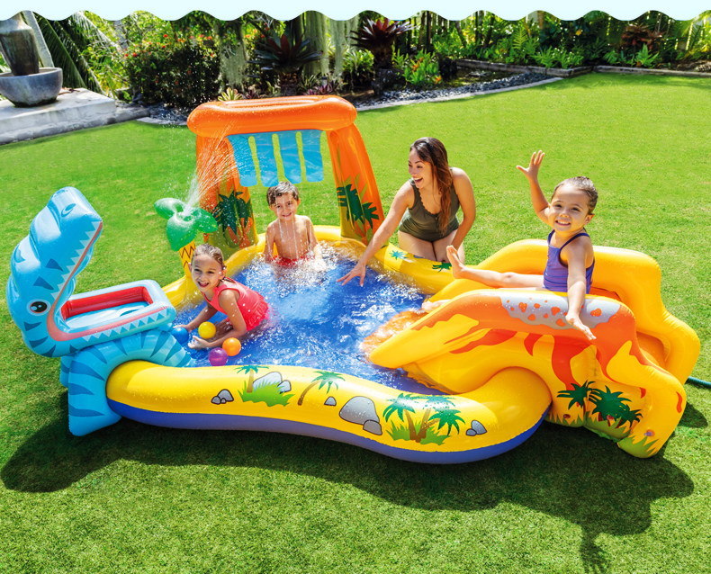 Оригинал Вода intex крокодил детские Бассейн с слайд-драматической бассейном Sunshade ползать бассейн рыба с ведром