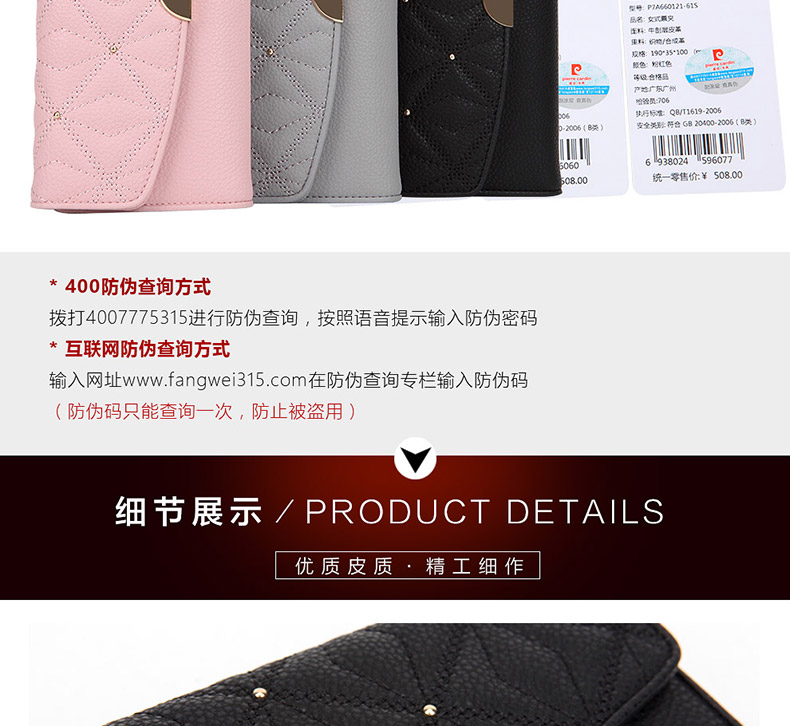 Пиркадан женский Деньги пакет длинный фасон оригинал Трехгибовый кошелек женский мягкий кожаный популярный брать с застежкой Многосторонняя кассета