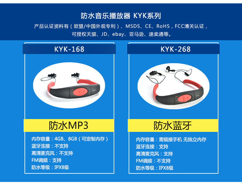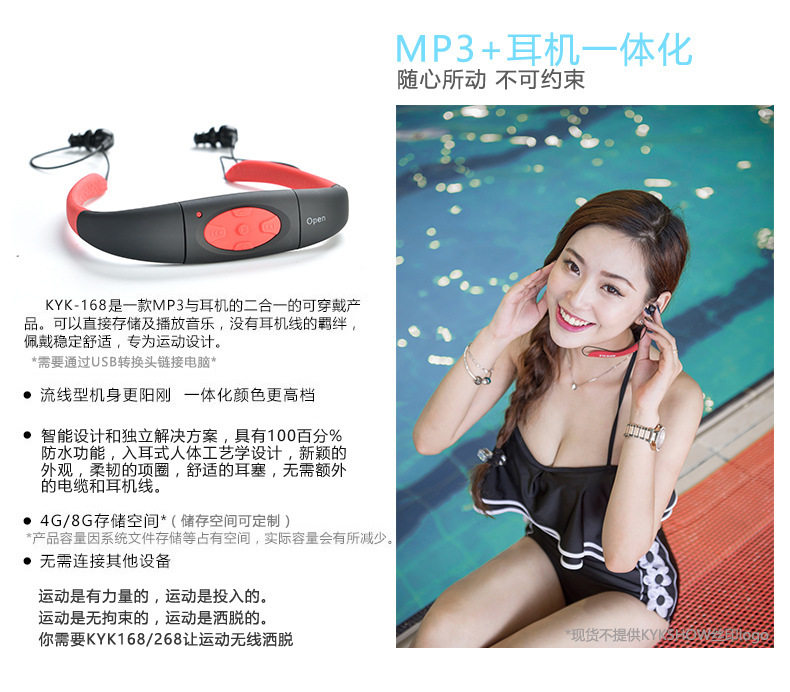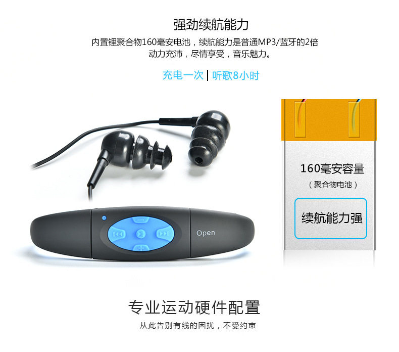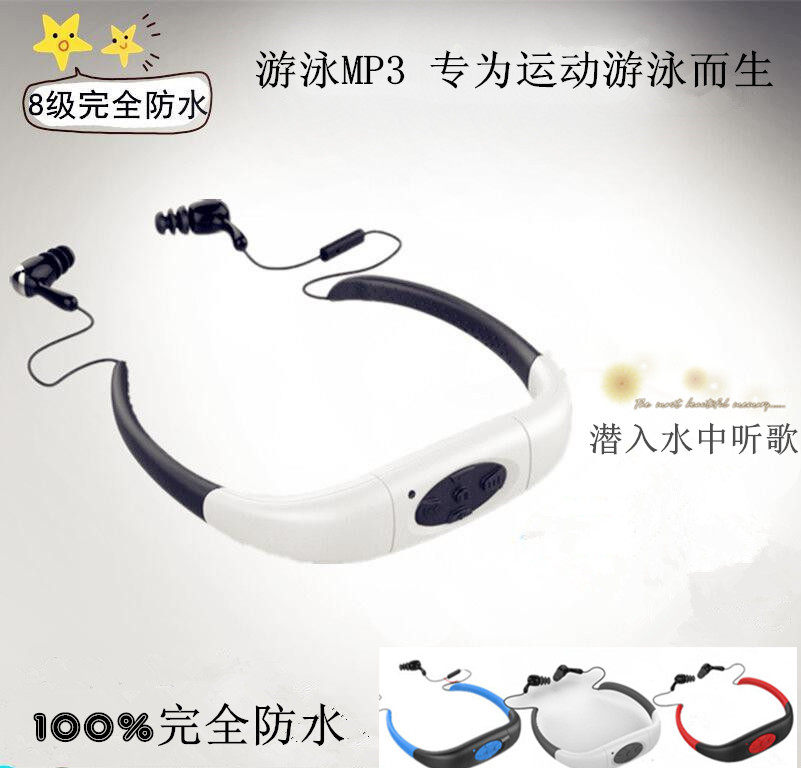 Плавать погружение синий Гарнитура воды низ MP3 водонепроницаемый Наушники Спорт бегущие головные уборы Плавание MP3-плеер