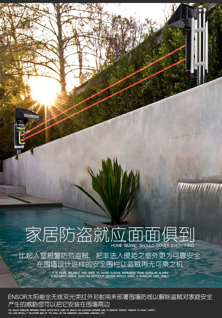Солнечная энергия без Проволока красный Забор тревоги внешнего самолета дверь окно водонепроницаемый красный Внешняя линия тревоги к детектору
