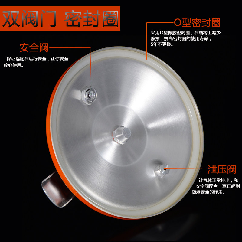Абсолютно взрывозащищенный   ;: новый один поколение установить полностью Тип невзрывоопасной скороварки, в этом продукте используется эластичная зажимная балка большого сечения из нержавеющей стали в качестве рабочего клапана и безопасности. полностью Когда клапан заблокирован, давление в баке продолжает расти. высокая И избыточное давление, упругая балка автоматическая Прыгай, пар в кастрюле будетИз горшка корпус Вентиляция вокругДля обеспеченияНет опасности для фритюрницы.