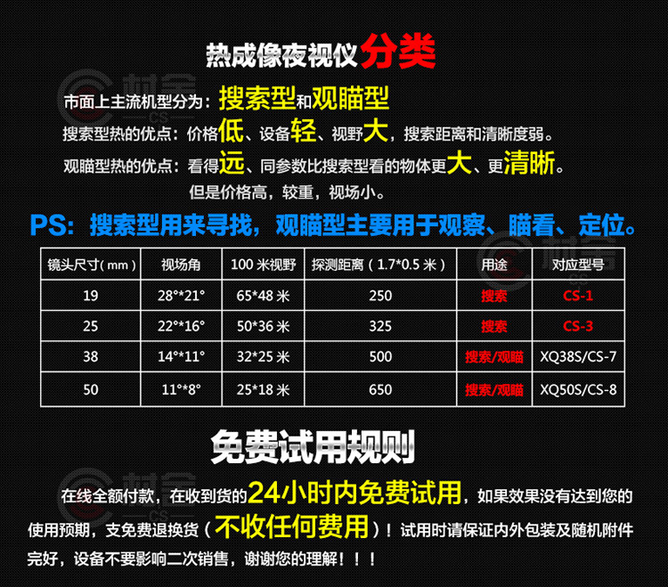 Профессиональный ответ: обычный Ночной вид только Поздно верх Использовать, ноСерия CS основана на красный Принцип внешнего тепловизации, мал по факторам окружающей среды, так без Быть белый День или поздно верх Эффект визуализации одинаково.