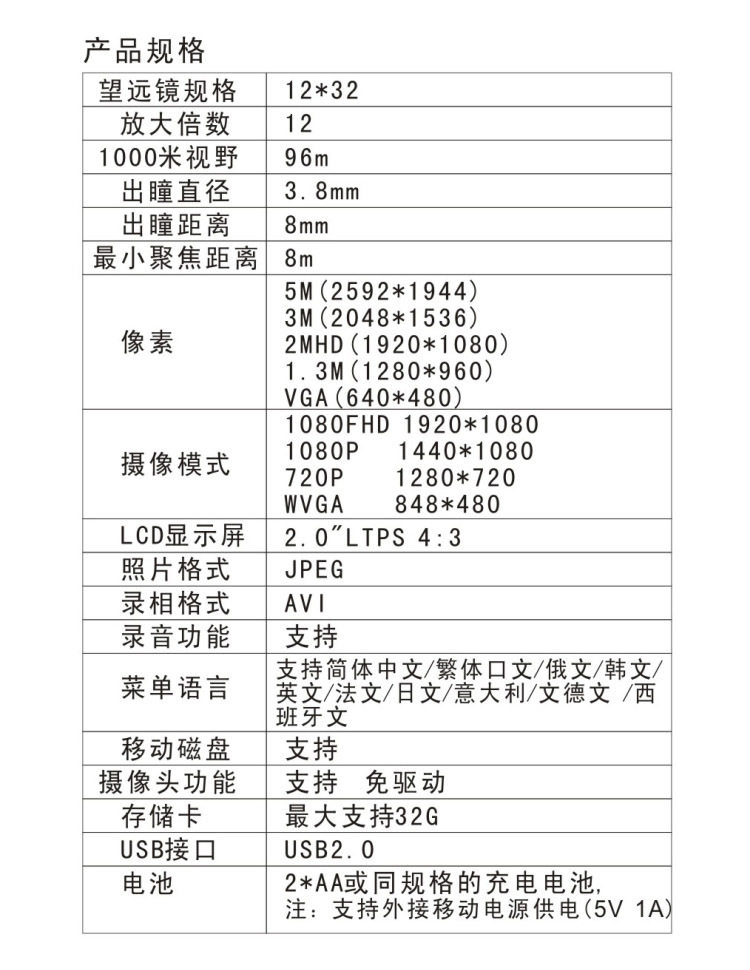 Telescope specifications: 12*32
