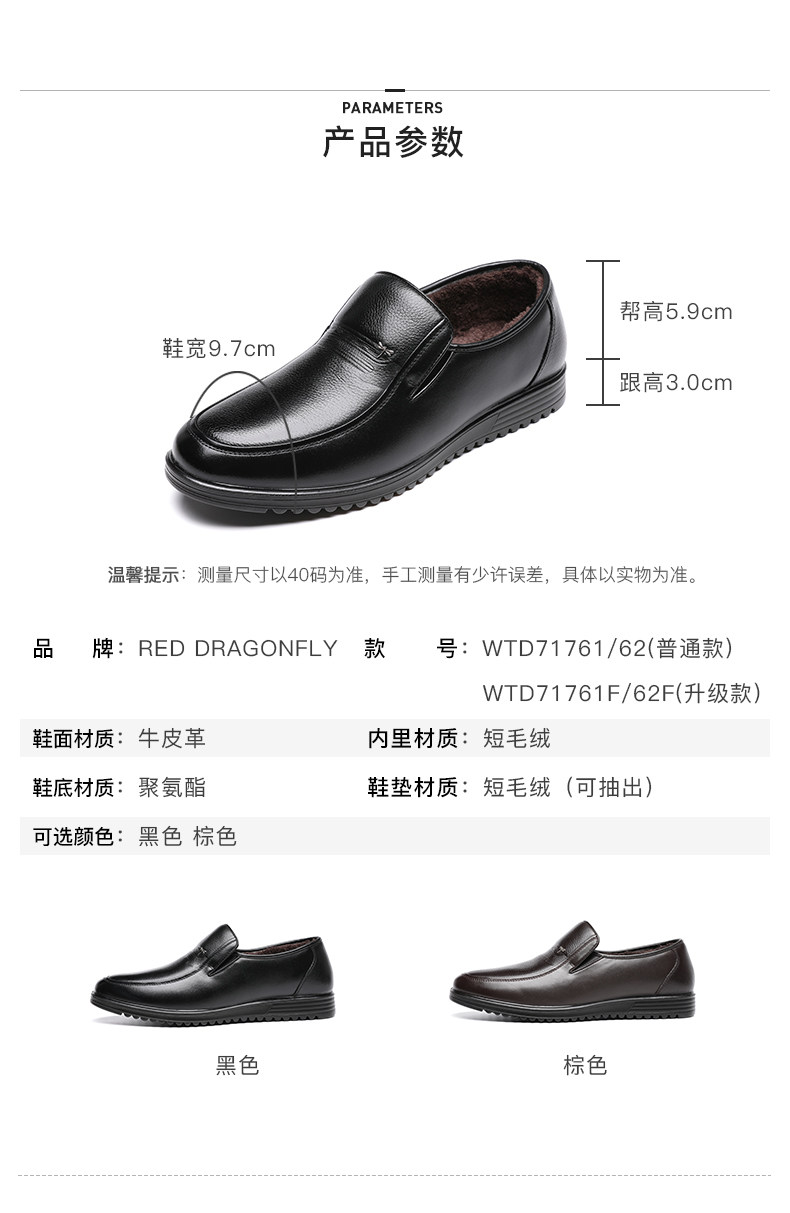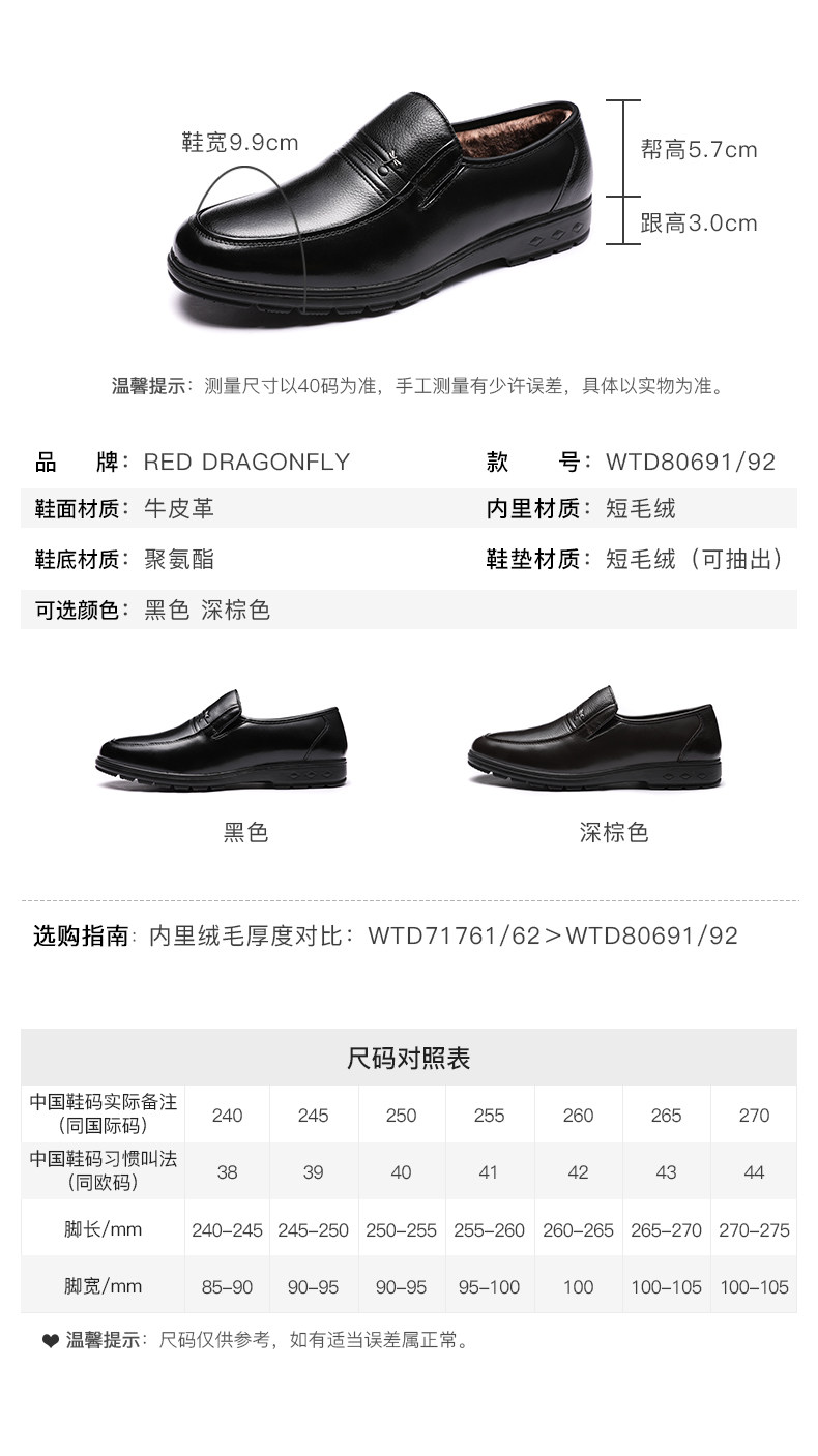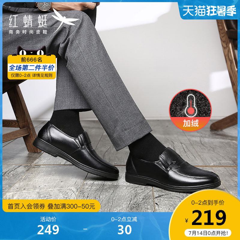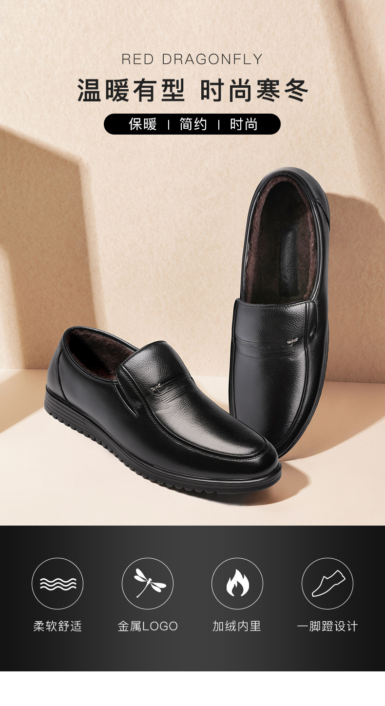 Красный стрекоза мужской обувь осень-зима Бизнес для отдыха кожаная обувь мужской замшевый удерживающий тепло ботинки с утеплением Комфортный из натуральной кожи Низкие галоши